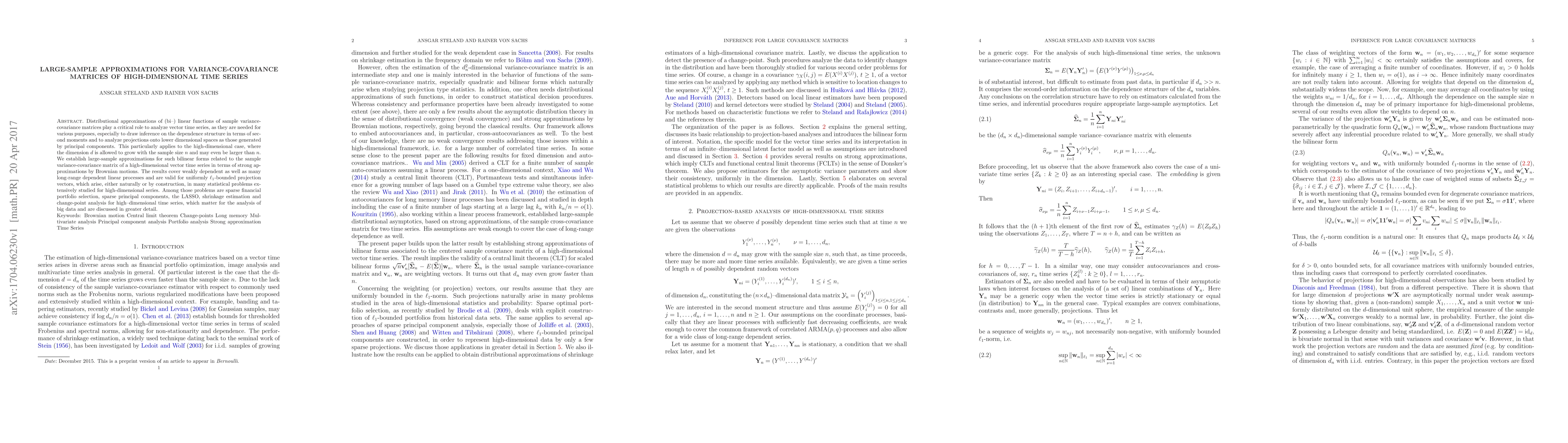 This paper develops large-sample approximations for variance-covariance matrices of high-dimensional time series, focusing on bilinear forms and their applications in inference and dimensionality reduction. The results are applicable to both weakly and strongly dependent processes, with implications for big data analysis, including portfolio selection and change-point detection.