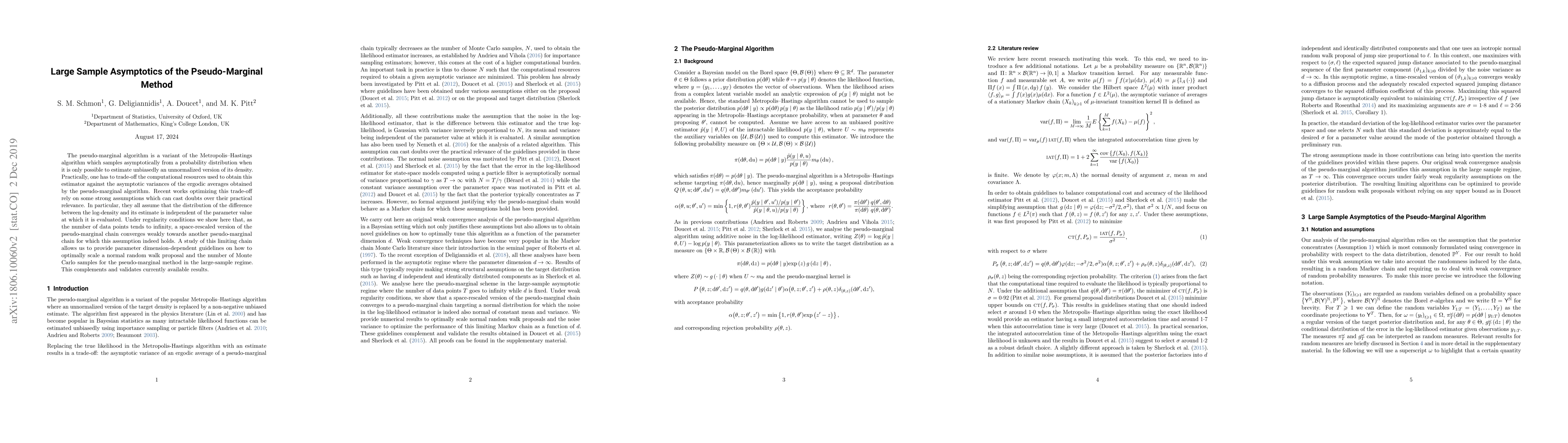 This paper investigates the large sample asymptotics of the pseudo-marginal method, demonstrating that under certain conditions, the pseudo-marginal chain converges to a limiting chain where assumptions about the independence of log-density estimates hold. It provides guidelines for optimal scaling of the proposal and Monte Carlo samples in the large-sample regime.