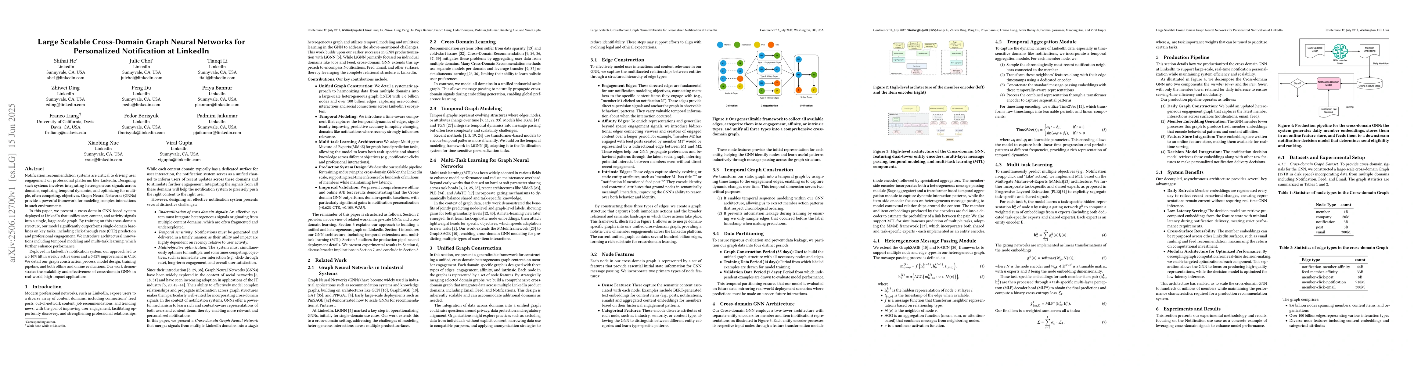 Notification recommendation systems are critical to driving user engagement on professional platforms like LinkedIn. Designing such systems involves integrating heterogeneous signals across domains, capturing temporal dynamics, and optimizing for multiple, often competing, objectives. Graph Neural Networks (GNNs) provide a powerful framework for modeling complex interactions in such environments. In this paper, we present a cross-domain GNN-based system deployed at LinkedIn that unifies user, content, and activity signals into a single, large-scale graph. By training on this cross-domain structure, our model significantly outperforms single-domain baselines on key tasks, including click-through rate (CTR) prediction and professional engagement. We introduce architectural innovations including temporal modeling and multi-task learning, which further enhance performance. Deployed in LinkedIn's notification system, our approach led to a 0.10% lift in weekly active users and a 0.62% improvement in CTR. We detail our graph construction process, model design, training pipeline, and both offline and online evaluations. Our work demonstrates the scalability and effectiveness of cross-domain GNNs in real-world, high-impact applications.