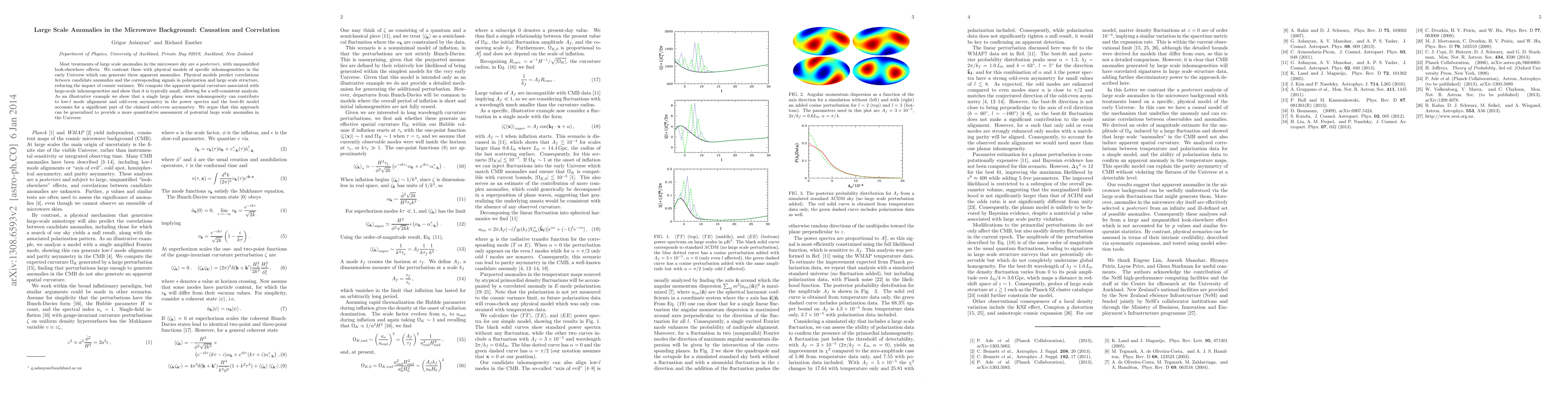 This paper proposes physical models for large scale anomalies in the cosmic microwave background, predicting correlations and signals in polarization and large scale structure. It demonstrates that a single large plane wave inhomogeneity can explain some claimed anomalies, like low-l mode alignment and odd-even power spectrum asymmetry, offering a more quantitative assessment of such anomalies.
