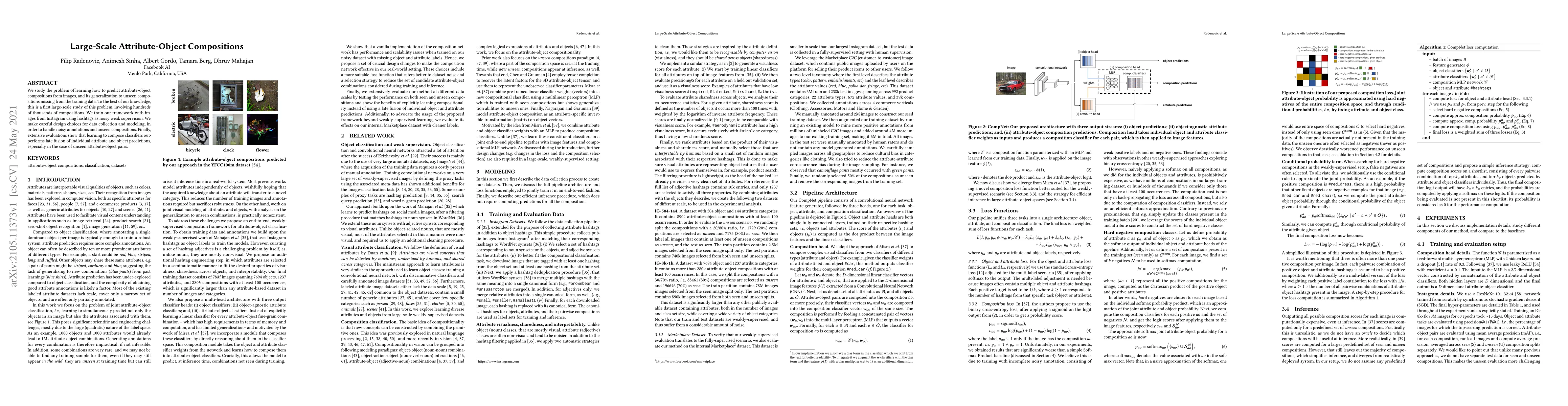 This paper investigates learning to predict attribute-object compositions from images, focusing on generalization to unseen compositions. The authors employ a large-scale framework trained on Instagram images, demonstrating that composing classifiers is more effective than late fusion for both seen and unseen attribute-object pairs.