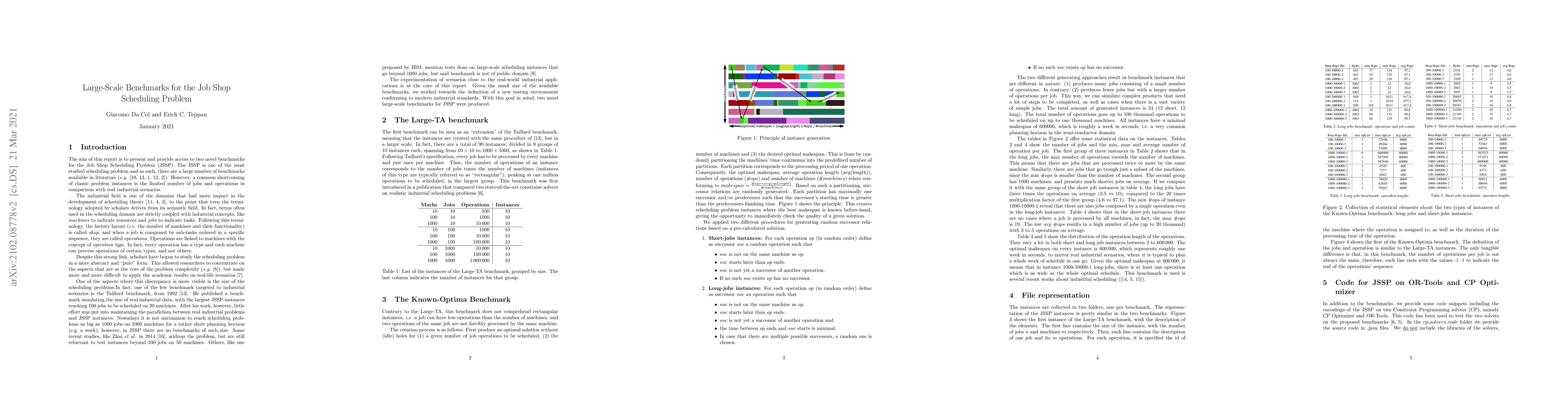 Two novel large-scale job shop scheduling benchmarks were created to test state-of-the-art solutions on real-world problems with up to 1 million operations. These benchmarks provide a closer representation of industrial scheduling scenarios for improved problem-solving accuracy.