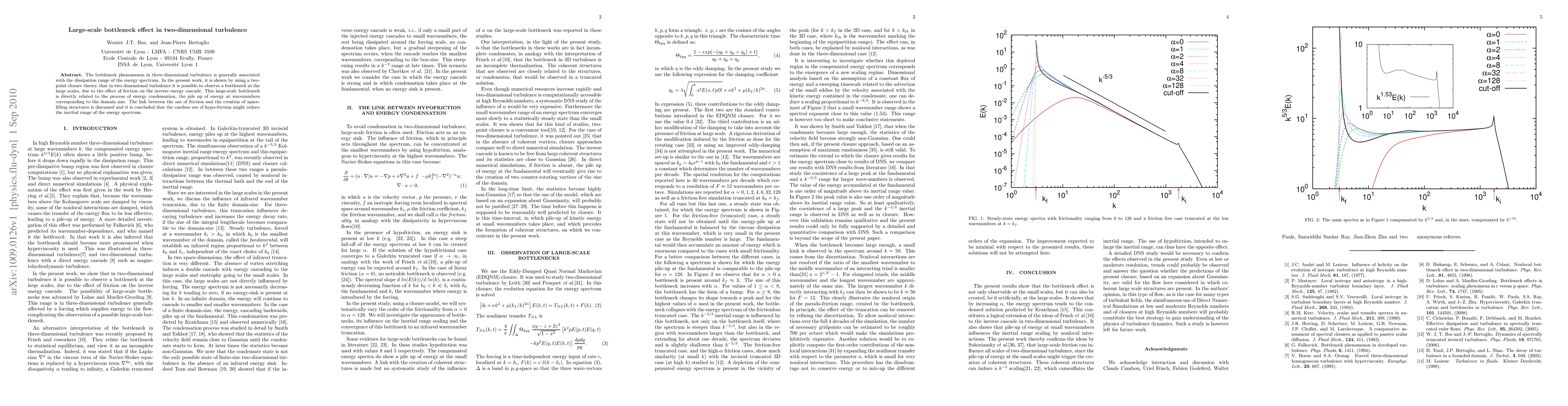 This paper demonstrates that two-dimensional turbulence exhibits a large-scale bottleneck effect due to friction influencing the inverse energy cascade, contrasting with the dissipation range bottleneck in three-dimensional turbulence. The study concludes that inappropriate use of hypofriction can diminish the inertial range of the energy spectrum.