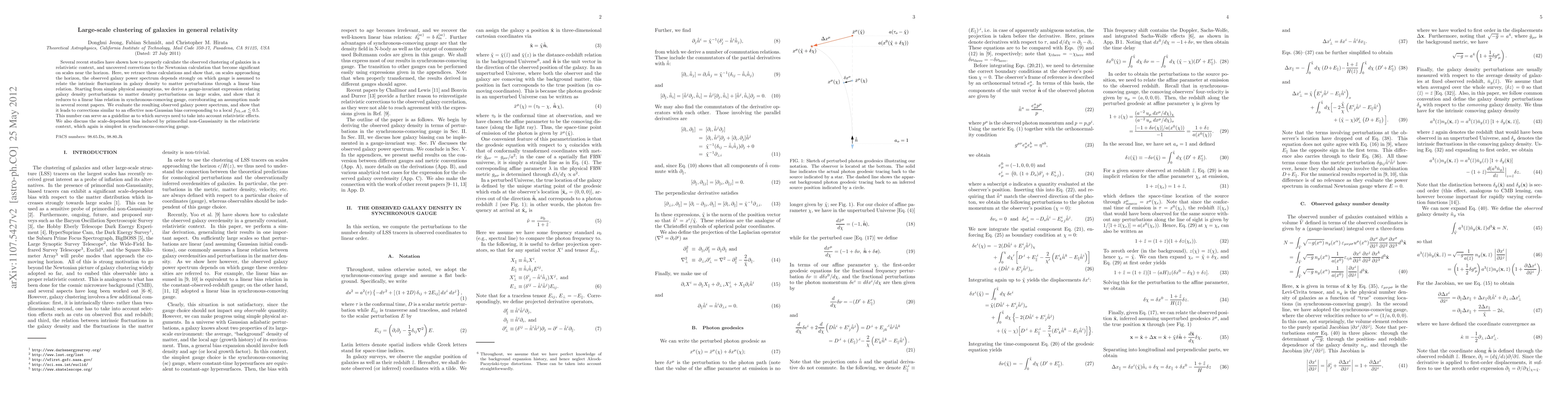Several recent studies have shown how to properly calculate the observed clustering of galaxies in a relativistic context, and uncovered corrections to the Newtonian calculation that become significant on scales near the horizon. Here, we retrace these calculations and show that, on scales approaching the horizon, the observed galaxy power spectrum depends strongly on which gauge is assumed to relate the intrinsic fluctuations in galaxy density to matter perturbations through a linear bias relation. Starting from simple physical assumptions, we derive a gauge-invariant expression relating galaxy density perturbations to matter density perturbations on large scales, and show that it reduces to a linear bias relation in synchronous-comoving gauge, corroborating an assumption made in several recent papers. We evaluate the resulting observed galaxy power spectrum, and show that it leads to corrections similar to an effective non-Gaussian bias corresponding to a local (effective) fNL < 0.5. This number can serve as a guideline as to which surveys need to take into account relativistic effects. We also discuss the scale-dependent bias induced by primordial non-Gaussianity in the relativistic context, which again is simplest in synchronous-comoving gauge.