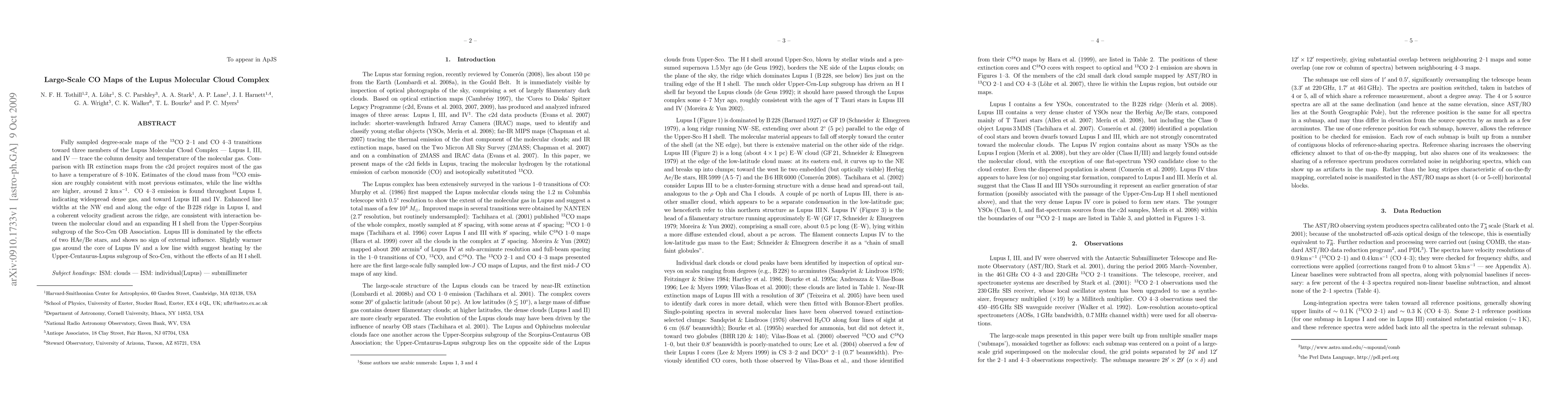 Fully sampled degree-scale maps of the 13CO 2-1 and CO 4-3 transitions toward three members of the Lupus Molecular Cloud Complex - Lupus I, III, and IV - trace the column density and temperature of the molecular gas. Comparison with IR extinction maps from the c2d project requires most of the gas to have a temperature of 8-10 K. Estimates of the cloud mass from 13CO emission are roughly consistent with most previous estimates, while the line widths are higher, around 2 km/s. CO 4-3 emission is found throughout Lupus I, indicating widespread dense gas, and toward Lupus III and IV. Enhanced line widths at the NW end and along the edge of the B228 ridge in Lupus I, and a coherent velocity gradient across the ridge, are consistent with interaction between the molecular cloud and an expanding HI shell from the Upper-Scorpius subgroup of the Sco-Cen OB Association. Lupus III is dominated by the effects of two HAe/Be stars, and shows no sign of external influence. Slightly warmer gas around the core of Lupus IV and a low line width suggest heating by the Upper-Centaurus-Lupus subgroup of Sco-Cen, without the effects of an HI shell.