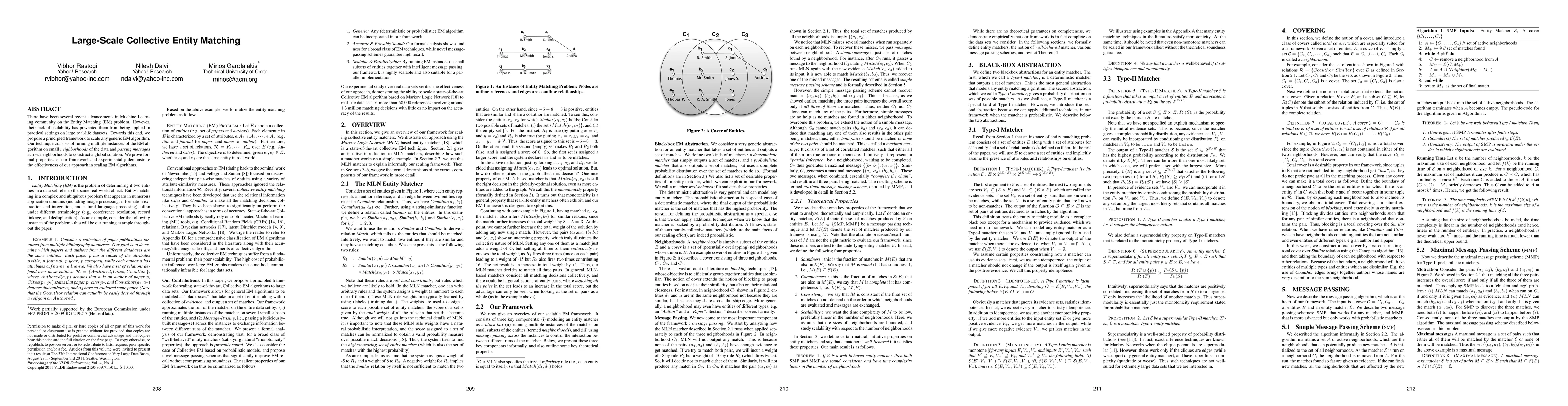 Researchers developed a scalable framework for Entity Matching (EM) algorithms by running multiple instances on small neighborhoods and passing messages to construct a global solution, demonstrating its effectiveness in large datasets.