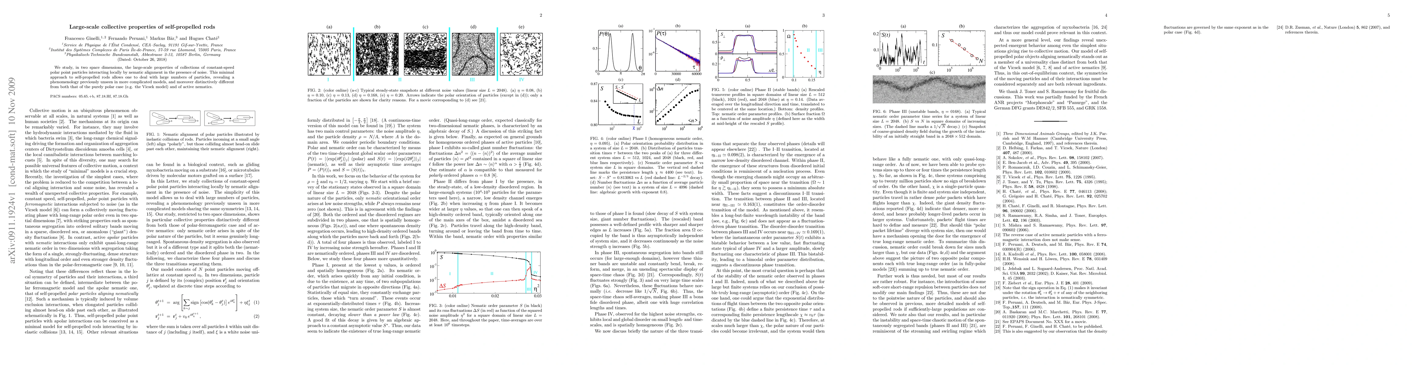 This paper investigates the large-scale collective behaviors of numerous self-propelled rods in two dimensions, focusing on local nematic alignment interactions amidst noise. The findings reveal unique phenomenological characteristics distinct from both polar-only and active nematic models.