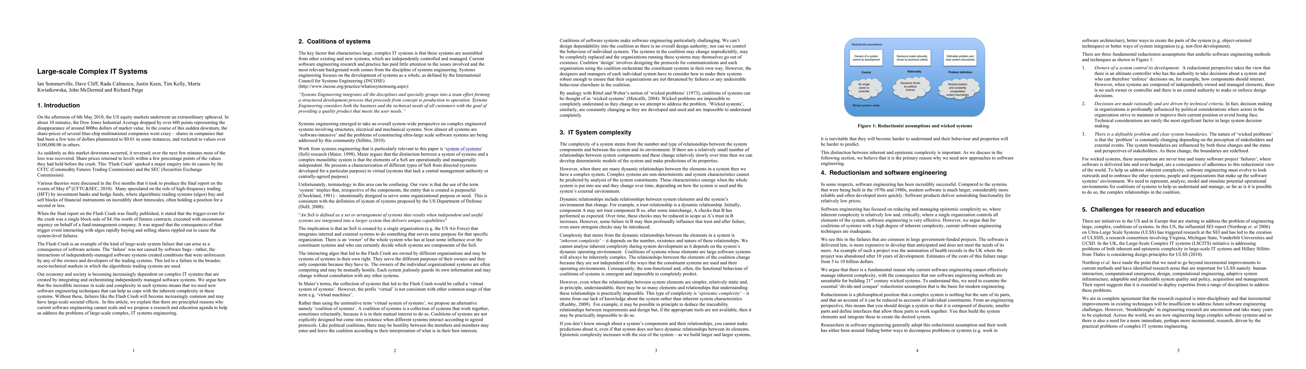 This paper explores the issues around the construction of large-scale complex systems which are built as 'systems of systems' and suggests that there are fundamental reasons, derived from the inherent complexity in these systems, why our current software engineering methods and techniques cannot be scaled up to cope with the engineering challenges of constructing such systems. It then goes on to propose a research and education agenda for software engineering that identifies the major challenges and issues in the development of large-scale complex, software-intensive systems. Central to this is the notion that we cannot separate software from the socio-technical environment in which it is used.