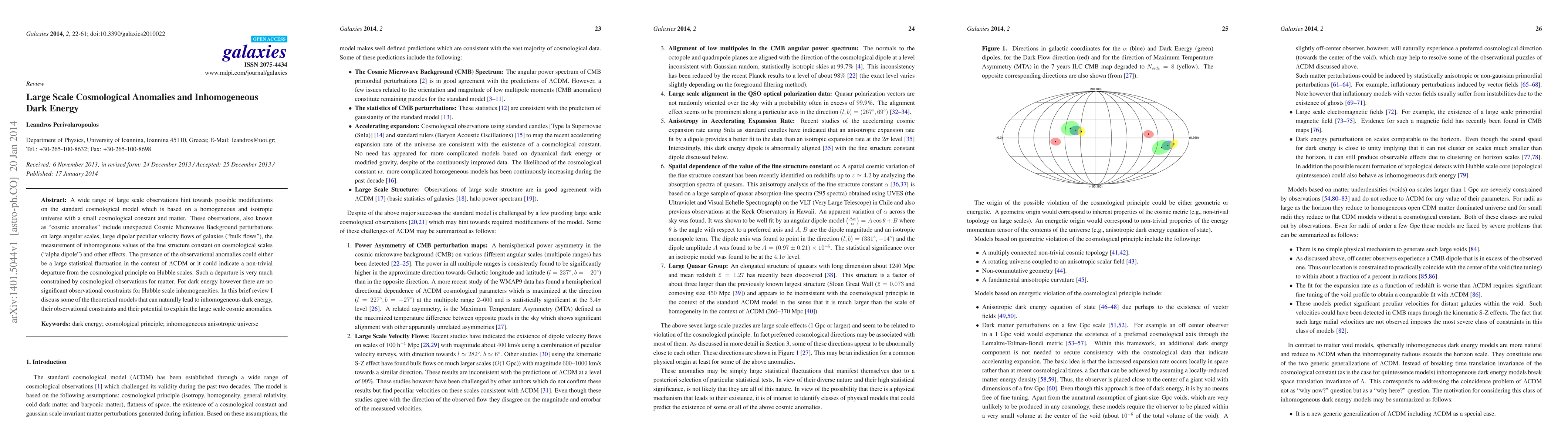This paper reviews theoretical models proposing inhomogeneous dark energy as an explanation for large scale cosmological anomalies, such as anomalies in the Cosmic Microwave Background and bulk flows of galaxies, which challenge the standard cosmological model. The paper discusses potential models and their observational constraints, suggesting that inhomogeneous dark energy could provide an alternative explanation for these anomalies.