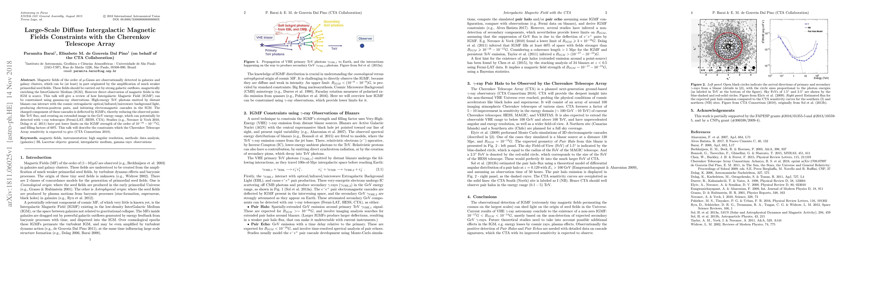 This paper reviews the potential of the Cherenkov Telescope Array (CTA) to constrain large-scale diffuse intergalactic magnetic fields (IGMF) through gamma-ray observations. It discusses how IGMFs can be inferred from the deflection of electromagnetic cascades initiated by TeV photons interacting with extragalactic background light, which may be detected in extended GeV images.