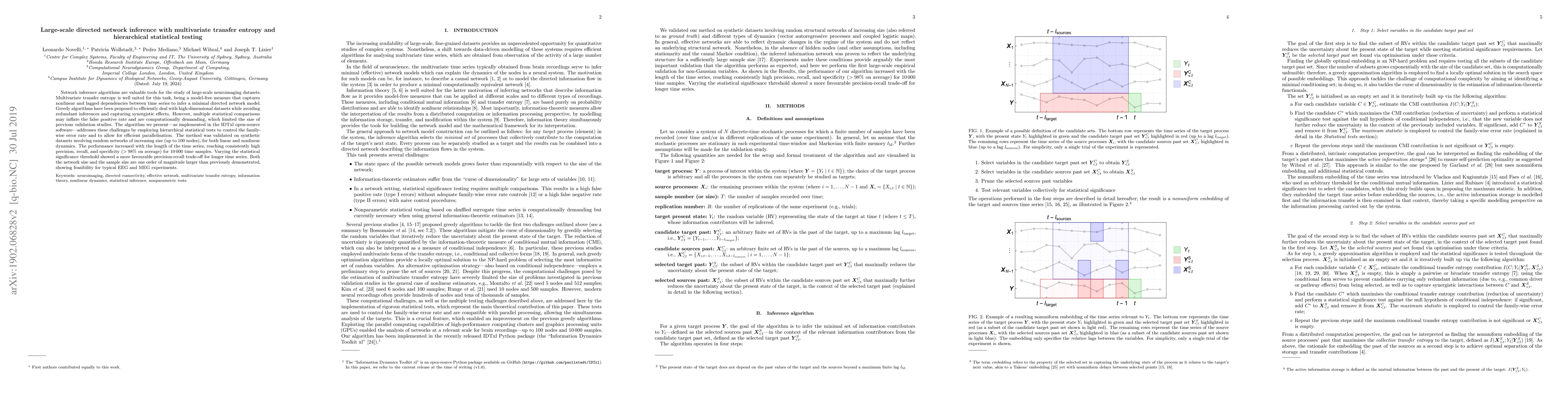 The work combines multivariate transfer entropy with hierarchical statistical testing to address the challenges of large-scale network inference, providing improved control over false positives and scalability compared to previous methods.