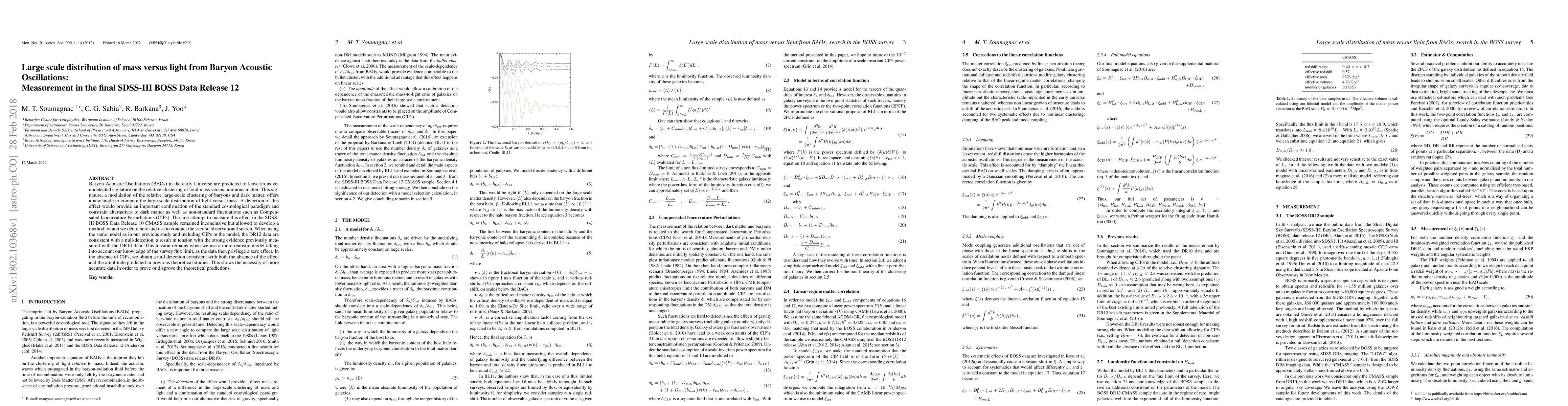 Researchers used large-scale data from the SDSS-III BOSS survey to search for a signature of Baryon Acoustic Oscillations in the distribution of mass versus light, finding no evidence of the effect, which contradicts previous results.