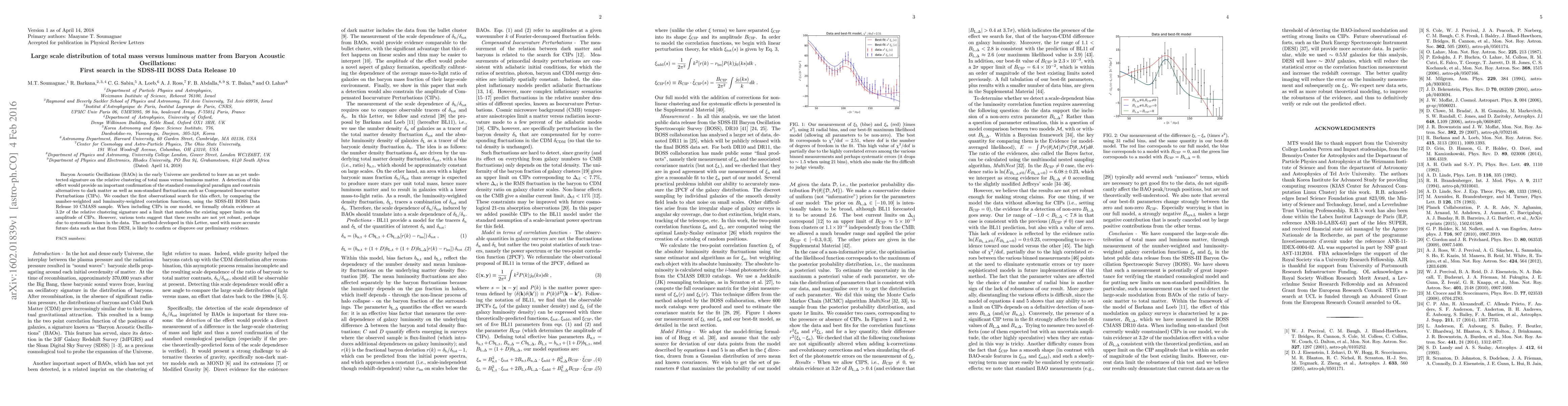 This study searches for a signature of baryon acoustic oscillations in the distribution of total mass versus luminous matter, finding preliminary evidence at 3.2× that may be confirmed or disproven with future data.