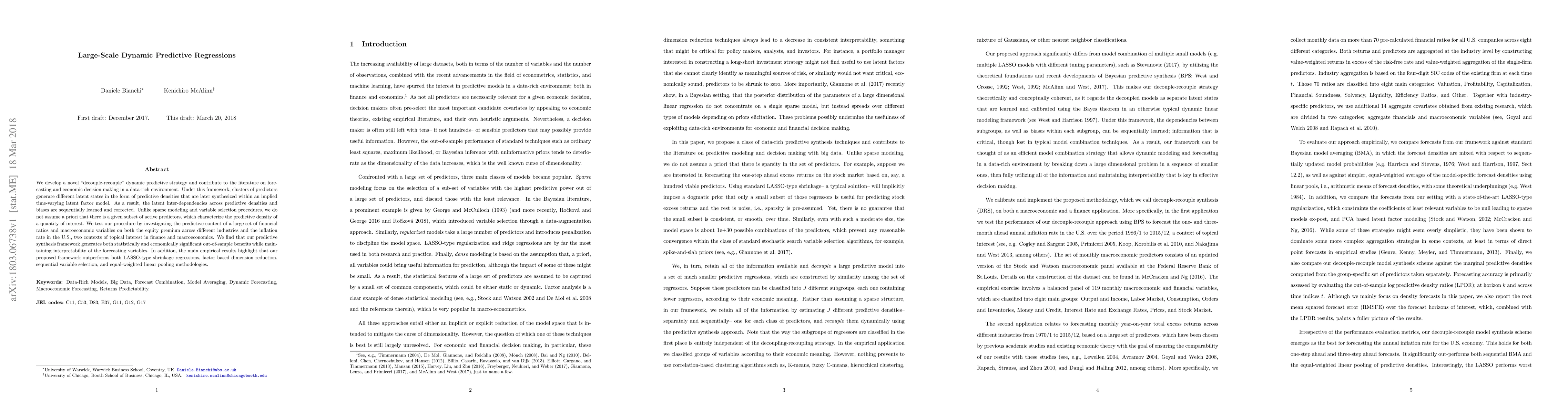 The research develops a 'decouple-recouple' dynamic predictive strategy, synthesizing predictive densities from clusters of predictors into a time-varying latent factor model, without assuming a priori active predictors.