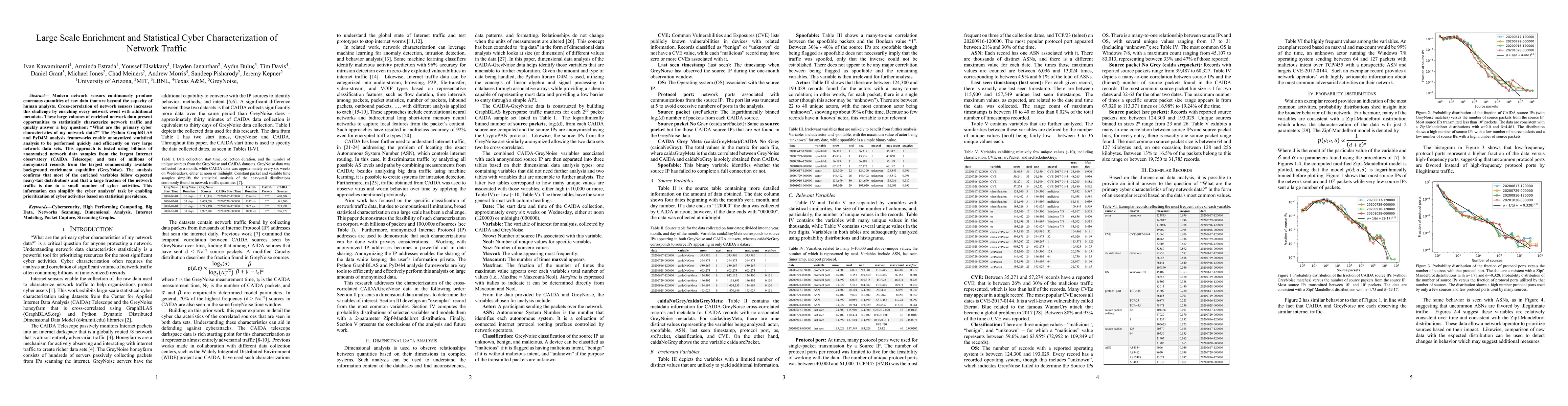 This paper explores the large-scale enrichment and statistical characterization of network traffic using Python GraphBLAS and PyD4M frameworks. It analyzes billions of anonymized samples from CAIDA Telescope and GreyNoise, confirming heavy-tail distributions and revealing that a small number of cyber activities dominate network traffic, aiding in analyst prioritization.