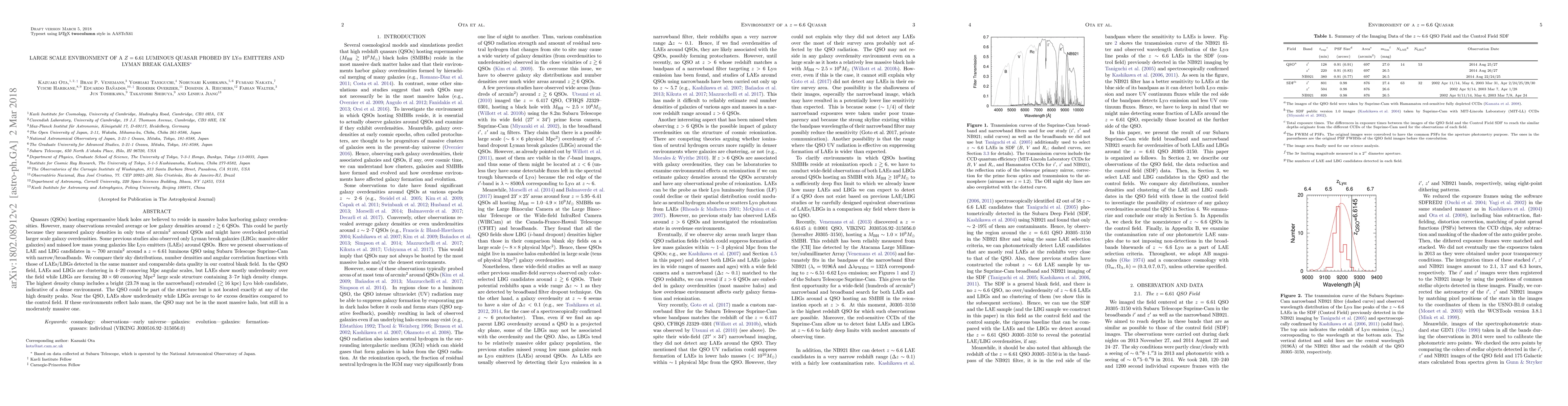 The paper presents a detailed analysis of the large-scale environment of a high-redshift QSO using LAEs and LBGs, applying robust statistical methods to compare their distributions and clustering properties.