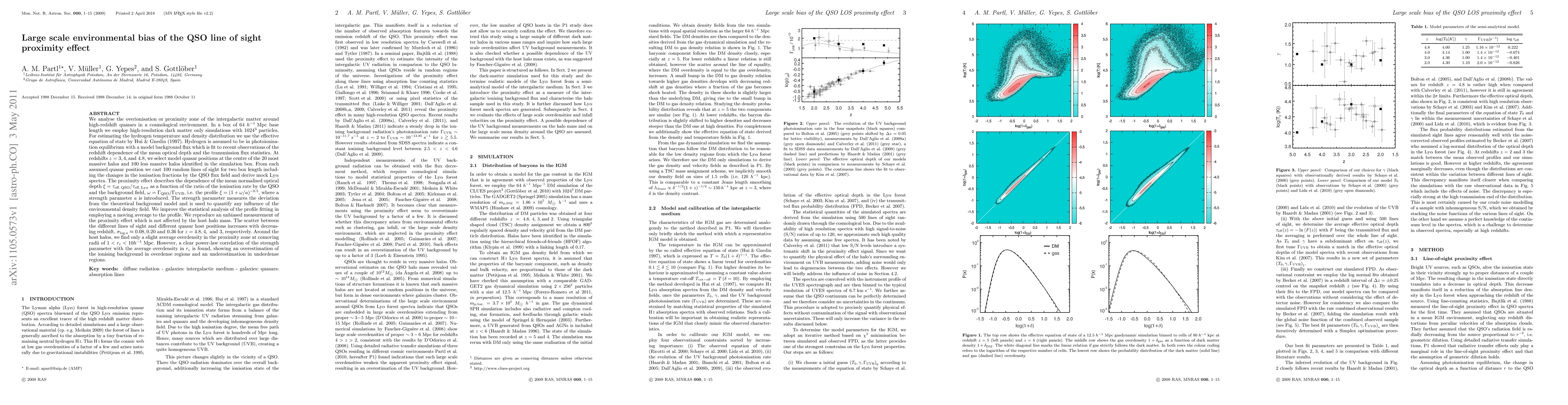 This research investigates the large-scale environmental bias of the quasar (QSO) line of sight proximity effect using dark matter simulations and photoionisation models. The study finds a slight overdensity in the proximity zone around high-redshift quasars, with a power-law correlation showing an overestimation of the ionising background in denser regions and an underestimation in sparser regions.