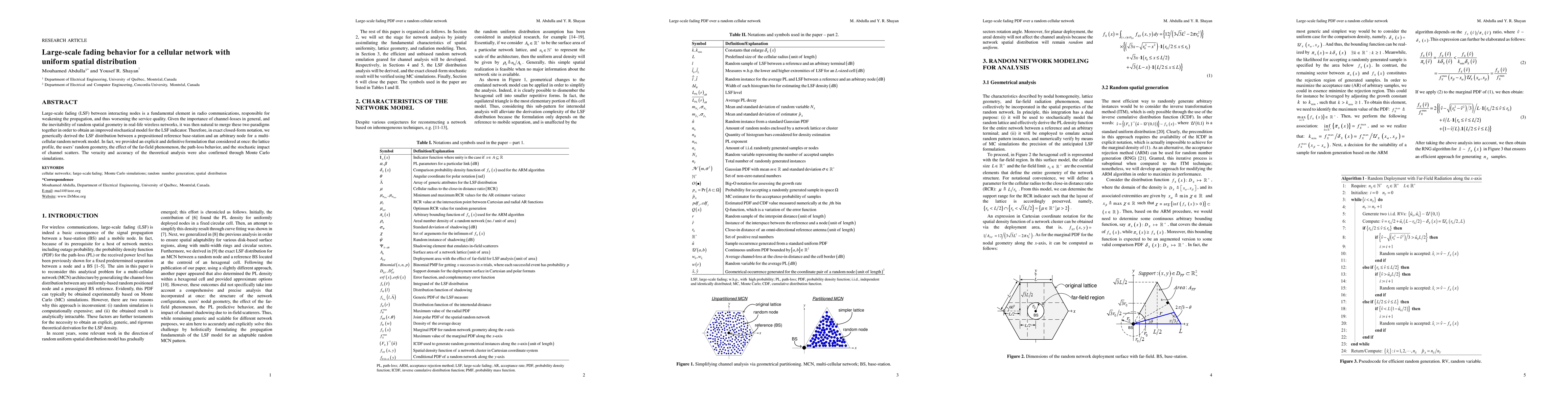 Large-scale fading (LSF) between interacting nodes is a fundamental element in radio communications, responsible for weakening the propagation, and thus worsening the service quality. Given the importance of channel-losses in general, and the inevitability of random spatial geometry in real-life wireless networks, it was then natural to merge these two paradigms together in order to obtain an improved stochastical model for the LSF indicator. Therefore, in exact closed-form notation, we generically derived the LSF distribution between a prepositioned reference base-station and an arbitrary node for a multi-cellular random network model. In fact, we provided an explicit and definitive formulation that considered at once: the lattice profile, the users' random geometry, the effect of the far-field phenomenon, the path-loss behavior, and the stochastic impact of channel scatters. The veracity and accuracy of the theoretical analysis were also confirmed through Monte Carlo simulations.