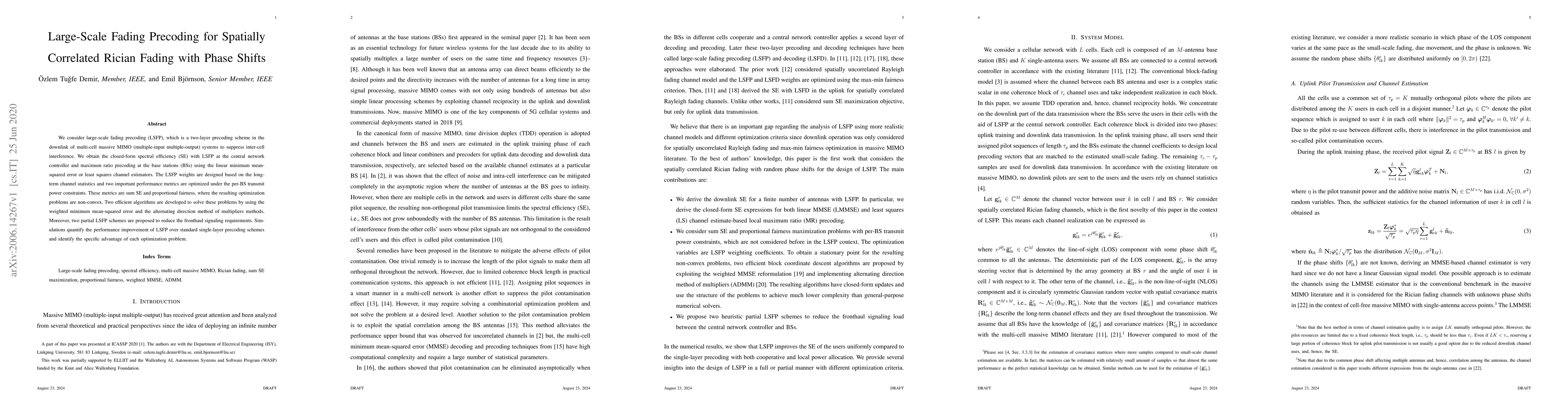 This paper proposes a large-scale fading precoding (LSFP) scheme for multi-cell massive MIMO systems to mitigate inter-cell interference, optimizing sum spectral efficiency and proportional fairness under transmit power constraints. Efficient algorithms are developed to solve the non-convex optimization problems, and simulations show performance gains over single-layer precoding.