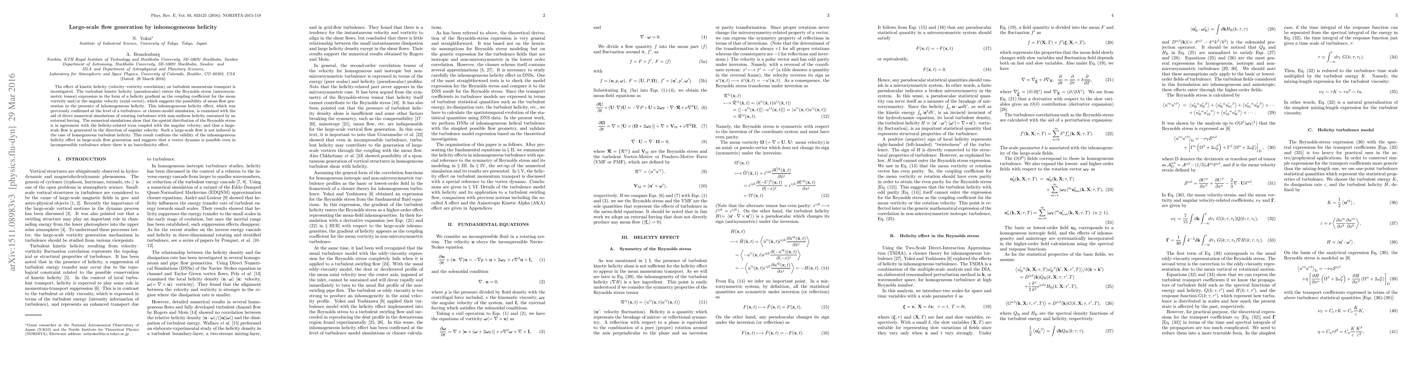 This paper investigates the impact of kinetic helicity on turbulent momentum transport, demonstrating through direct numerical simulations that inhomogeneous helicity generates large-scale flows aligned with angular velocity, confirming the inhomogeneous helicity effect and suggesting the possibility of a vortex dynamo in incompressible turbulence.