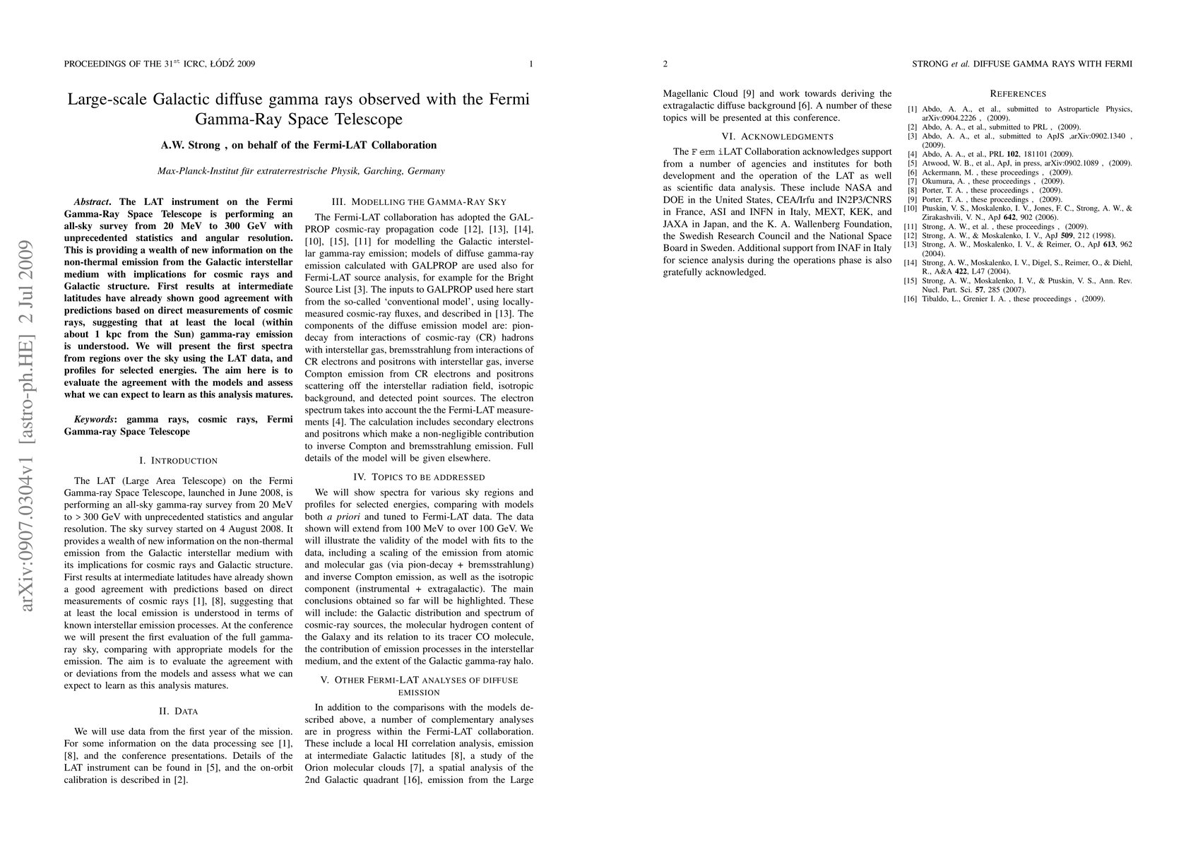 The LAT instrument on the Fermi Gamma-Ray Space Telescope is performing an all-sky survey from 20 MeV to 300 GeV with unprecedented statistics and angular resolution. This is providing a wealth of new information on the non-thermal emission from the Galactic interstellar medium with implications for cosmic rays and Galactic structure. First results at intermediate latitudes have already shown good agreement with predictions based on direct measurements of cosmic rays, suggesting that at least the local (within about 1 kpc from the Sun) gamma-ray emission is understood. We will present the first spectra from regions over the sky using the LAT data, and profiles for selected energies. The aim here is to evaluate the agreement with the models and assess what we can expect to learn as this analysis matures.