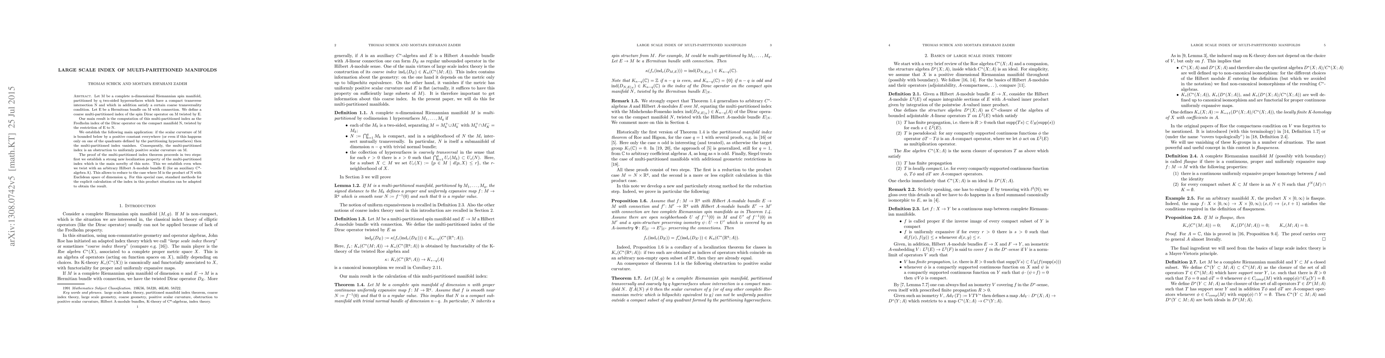 This research defines a coarse multi-partitioned index for the spin Dirac operator on a Riemannian manifold partitioned by hypersurfaces and computes it as the Fredholm index of the Dirac operator on the intersection manifold. It establishes that the multi-partitioned index vanishes under certain positive scalar curvature conditions, serving as an obstruction to uniformly positive scalar curvature on the original manifold.