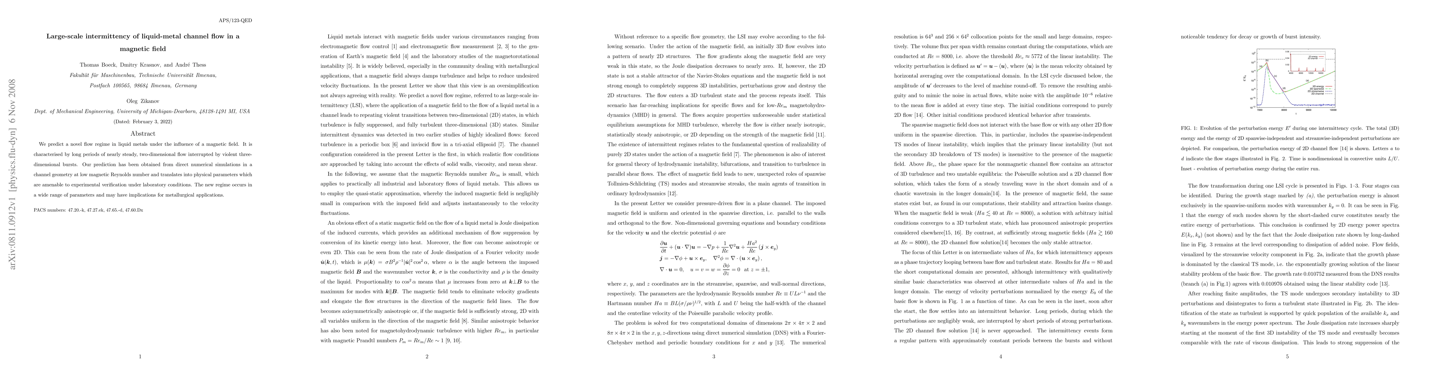 We predict a novel flow regime in liquid metals under the influence of a magnetic field. It is characterised by long periods of nearly steady, two-dimensional flow interrupted by violent three-dimensional bursts. Our prediction has been obtained from direct numerical simulations in a channel geometry at low magnetic Reynolds number and translates into physical parameters which are amenable to experimental verification under laboratory conditions. The new regime occurs in a wide range of parameters and may have implications for metallurgical applications.