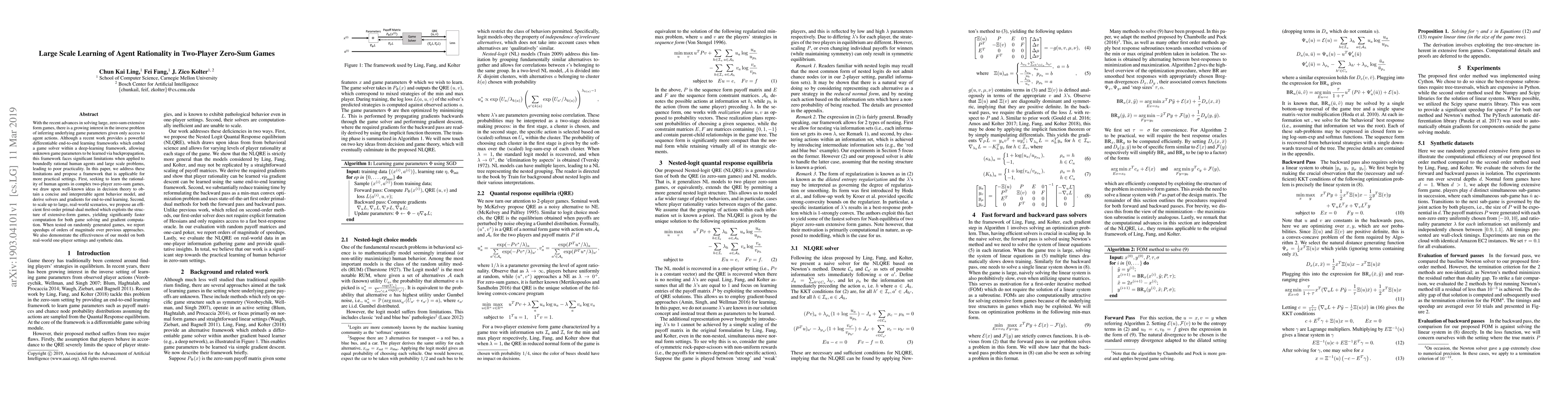 This paper proposes a new framework for learning the rationality of human agents in large-scale two-player zero-sum games by combining decision theory with efficient computational methods, achieving significant speedups over previous approaches. The framework is shown to be effective in both synthetic and real-world scenarios.