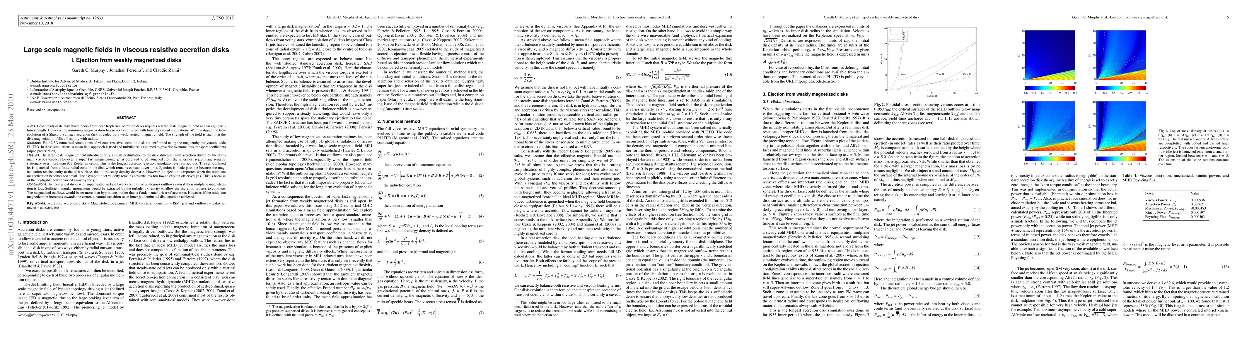This paper investigates the dynamics of viscous resistive accretion disks with weak vertical magnetic fields, finding that a super fast magnetosonic jet can be ejected from the disk's inner regions due to surface magnetization reaching unity. Despite the jet's formation, the midplane's low magnetization limits its power, suggesting that such outflows are byproducts rather than primary drivers of accretion.