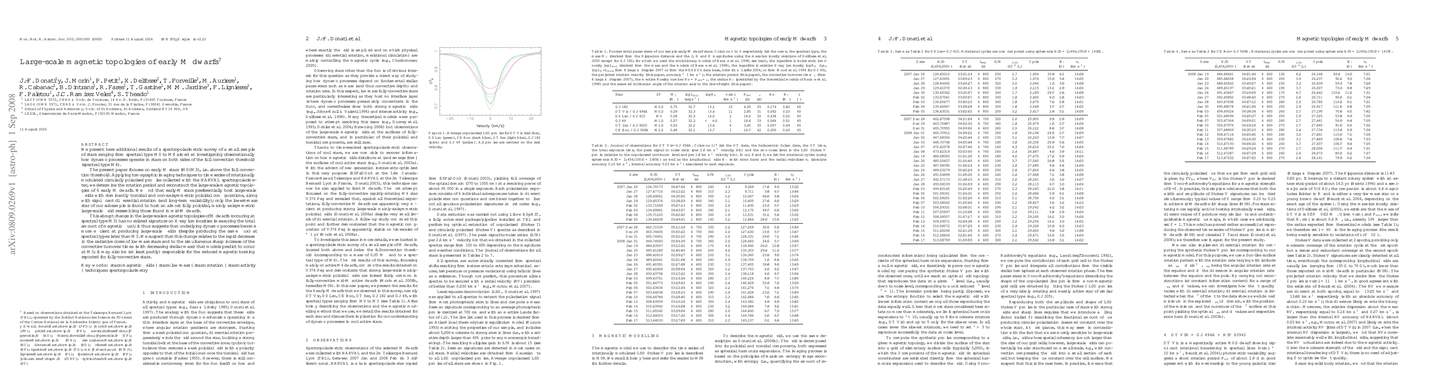 We present here additional results of a spectropolarimetric survey of a small sample of stars ranging from spectral type M0 to M8 aimed at investigating observationally how dynamo processes operate in stars on both sides of the full convection threshold (spectral type M4). The present paper focuses on early M stars (M0--M3), i.e. above the full convection threshold. Applying tomographic imaging techniques to time series of rotationally modulated circularly polarised profiles collected with the NARVAL spectropolarimeter, we determine the rotation period and reconstruct the large-scale magnetic topologies of 6 early M dwarfs. We find that early-M stars preferentially host large-scale fields with dominantly toroidal and non-axisymmetric poloidal configurations, along with significant differential rotation (and long-term variability); only the lowest-mass star of our subsample is found to host an almost fully poloidal, mainly axisymmetric large-scale field ressembling those found in mid-M dwarfs. This abrupt change in the large-scale magnetic topologies of M dwarfs (occuring at spectral type M3) has no related signature on X-ray luminosities (measuring the total amount of magnetic flux); it thus suggests that underlying dynamo processes become more efficient at producing large-scale fields (despite producing the same flux) at spectral types later than M3. We suspect that this change relates to the rapid decrease in the radiative cores of low-mass stars and to the simultaneous sharp increase of the convective turnover times (with decreasing stellar mass) that models predict to occur at M3; it may also be (at least partly) responsible for the reduced magnetic braking reported for fully-convective stars.