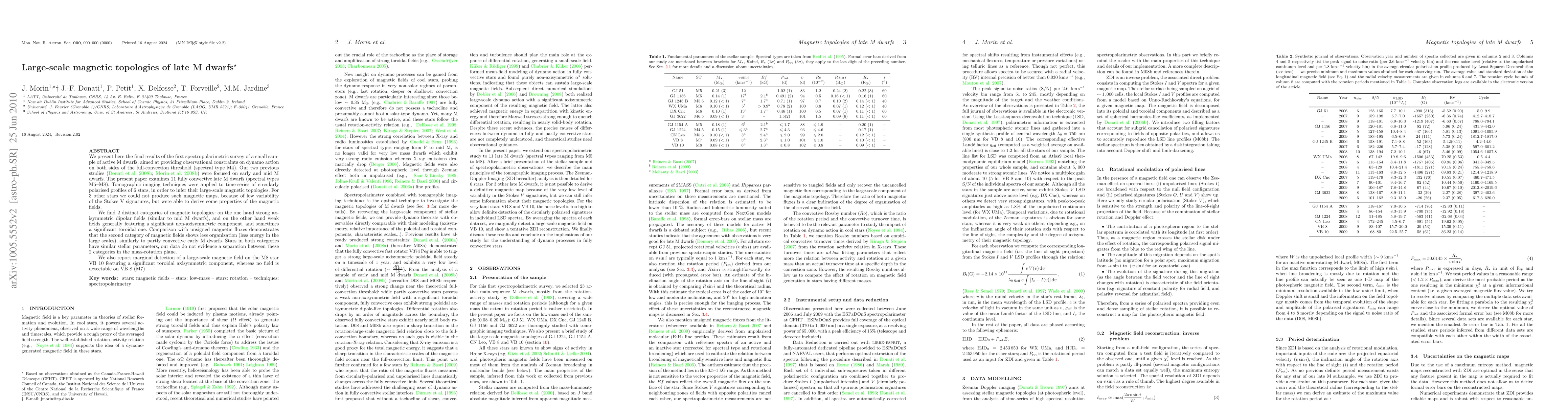 This study investigates the large-scale magnetic topologies of 11 late M dwarfs (M5-M8) using spectropolarimetry and tomographic imaging. The results reveal two distinct magnetic field types: strong axisymmetric dipolar fields and weaker, more complex fields with significant non-axisymmetric and toroidal components.
