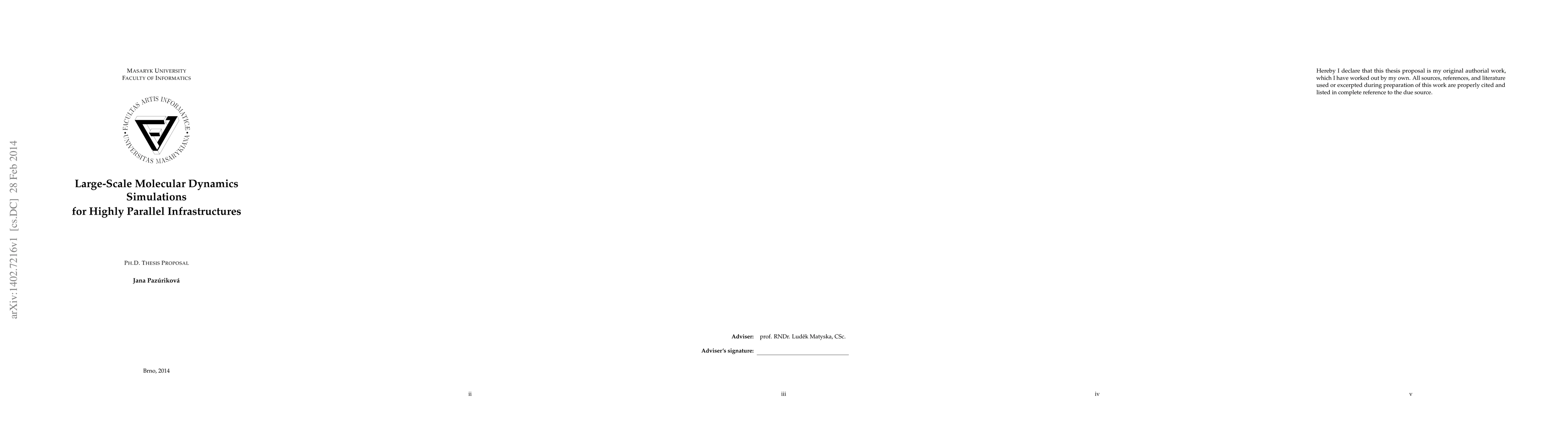 This paper explores large-scale molecular dynamics simulations for highly parallel computing infrastructures, aiming to enhance parallelism by incorporating parallel-in-time computation to overcome current limitations in strong scaling. The study proposes novel methods to achieve significant speed-up compared to traditional sequential-in-time calculations.
