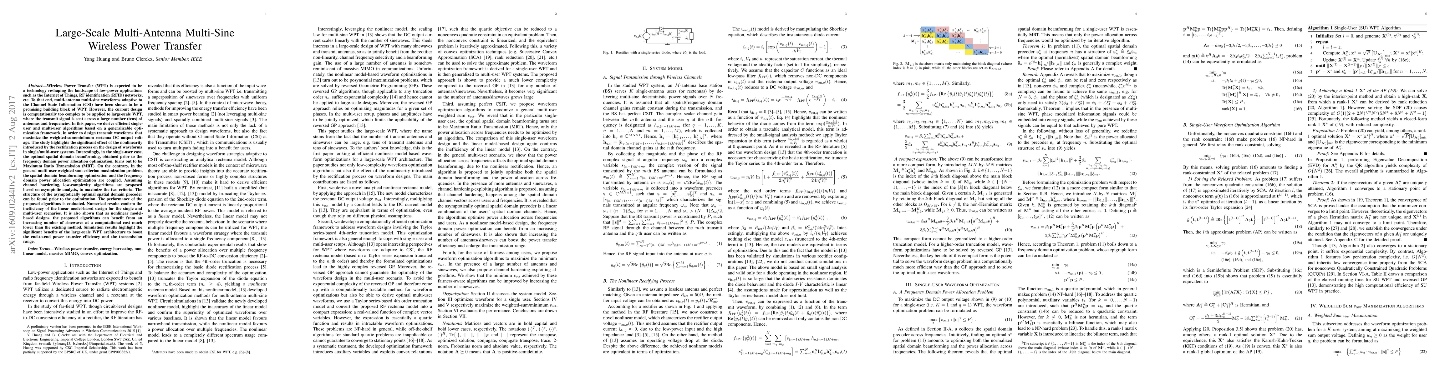 Wireless Power Transfer (WPT) is expected to be a technology reshaping the landscape of low-power applications such as the Internet of Things, Radio Frequency identification (RFID) networks, etc. Although there has been some progress towards multi-antenna multi-sine WPT design, the large-scale design of WPT, reminiscent of massive MIMO in communications, remains an open challenge. In this paper, we derive efficient multiuser algorithms based on a generalizable optimization framework, in order to design transmit sinewaves that maximize the weighted-sum/minimum rectenna output DC voltage. The study highlights the significant effect of the nonlinearity introduced by the rectification process on the design of waveforms in multiuser systems. Interestingly, in the single-user case, the optimal spatial domain beamforming, obtained prior to the frequency domain power allocation optimization, turns out to be Maximum Ratio Transmission (MRT). In contrast, in the general weighted sum criterion maximization problem, the spatial domain beamforming optimization and the frequency domain power allocation optimization are coupled. Assuming channel hardening, low-complexity algorithms are proposed based on asymptotic analysis, to maximize the two criteria. The structure of the asymptotically optimal spatial domain precoder can be found prior to the optimization. The performance of the proposed algorithms is evaluated. Numerical results confirm the inefficiency of the linear model-based design for the single and multi-user scenarios. It is also shown that as nonlinear model-based designs, the proposed algorithms can benefit from an increasing number of sinewaves.
