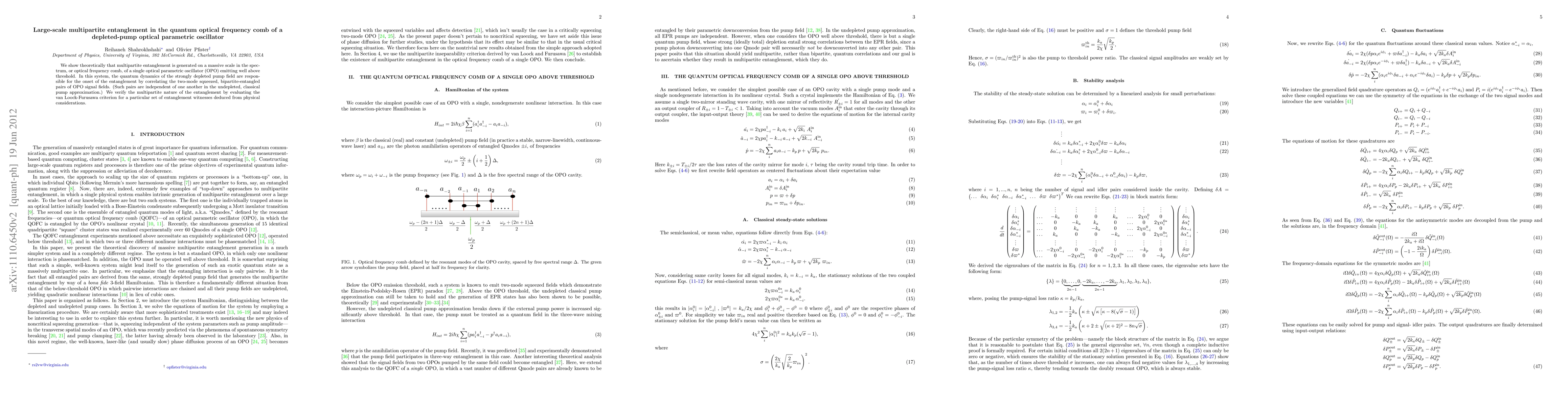 This paper theoretically demonstrates the generation of large-scale multipartite entanglement in the optical frequency comb of a depleted-pump optical parametric oscillator, attributing the entanglement to the quantum dynamics of the pump field. The multipartite nature of the entanglement is confirmed using the van Loock-Furusawa criterion.
