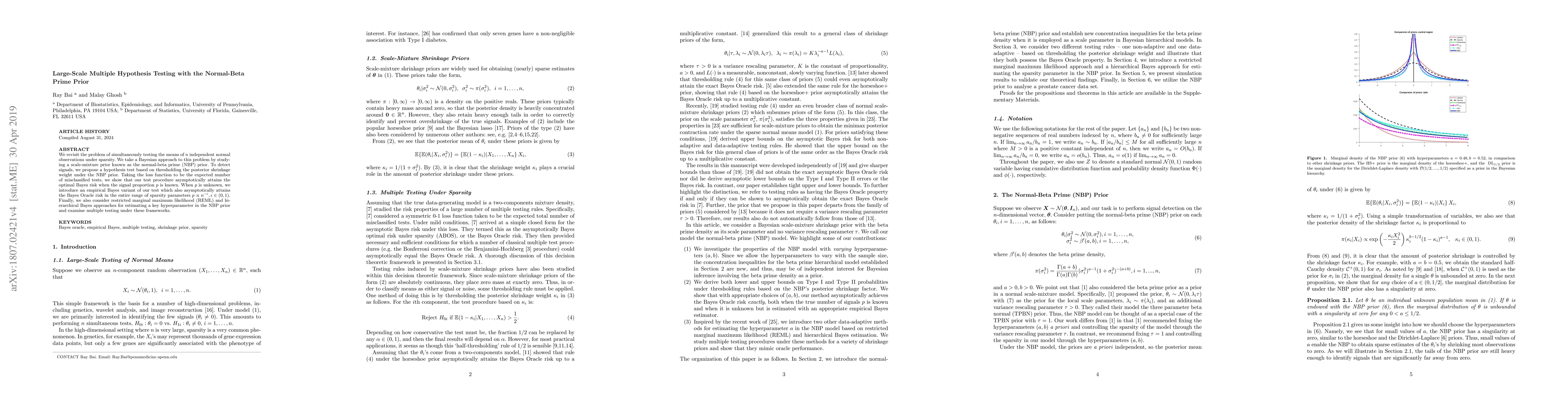 Researchers developed a Bayesian approach for multiple hypothesis testing using a novel prior distribution called the normal-beta prime (NBP) prior. Their method asymptotically attains optimal Bayes risk under certain conditions and has implications for signal detection in high-dimensional data.
