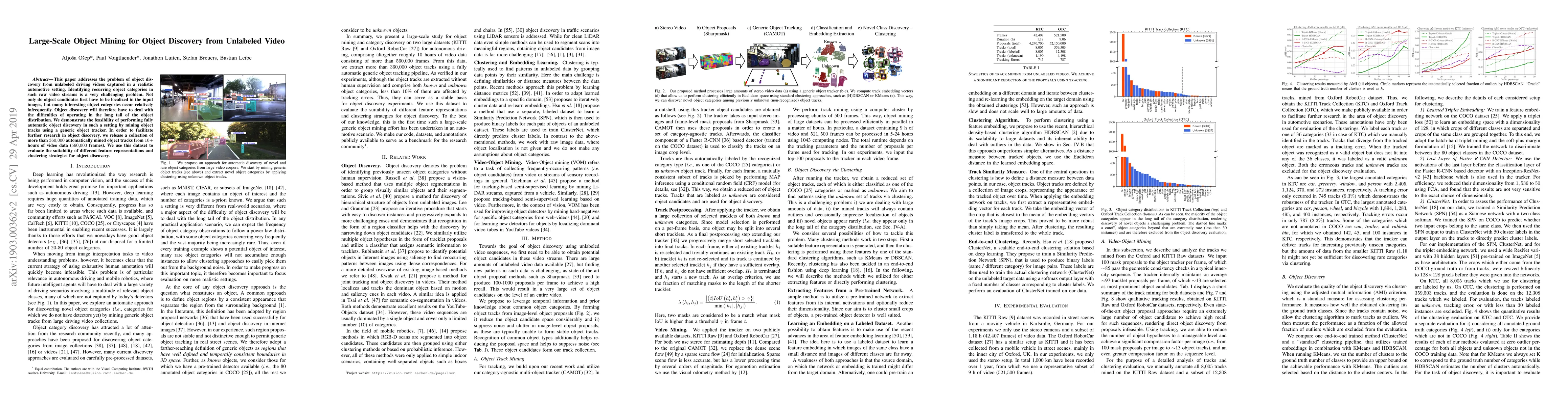 This paper explores fully automatic object discovery in unlabeled driving videos using a generic object tracker, addressing the challenge of identifying infrequent object categories. It releases a dataset of over 360,000 mined object tracks to facilitate further research and evaluates various feature representations and clustering strategies.