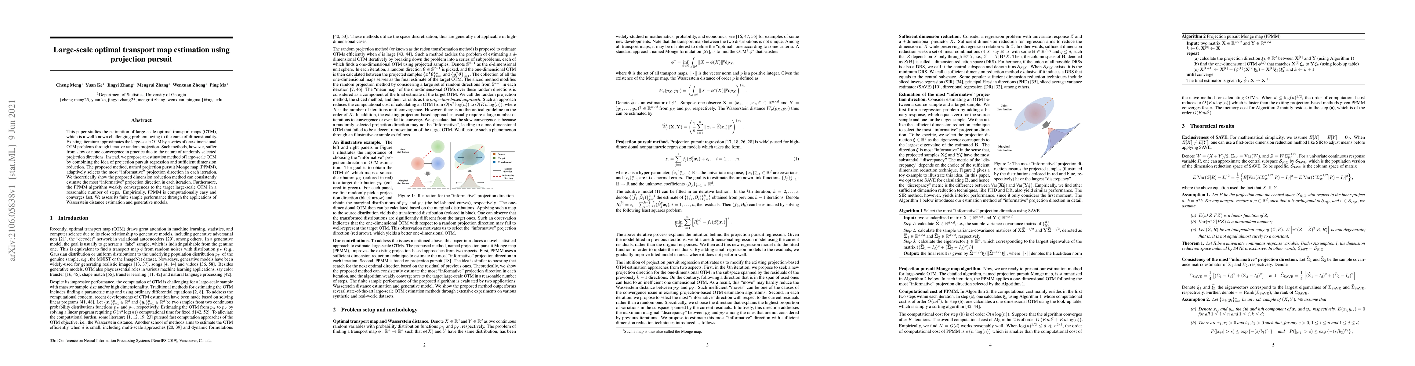 This paper proposes a new method called projection pursuit Monge map (PPMM) for estimating large-scale optimal transport maps, which adaptively selects the most informative projection direction in each iteration to improve convergence speed. The PPMM method is shown to weakly converge to the target optimal transport map and performs well in practical applications.