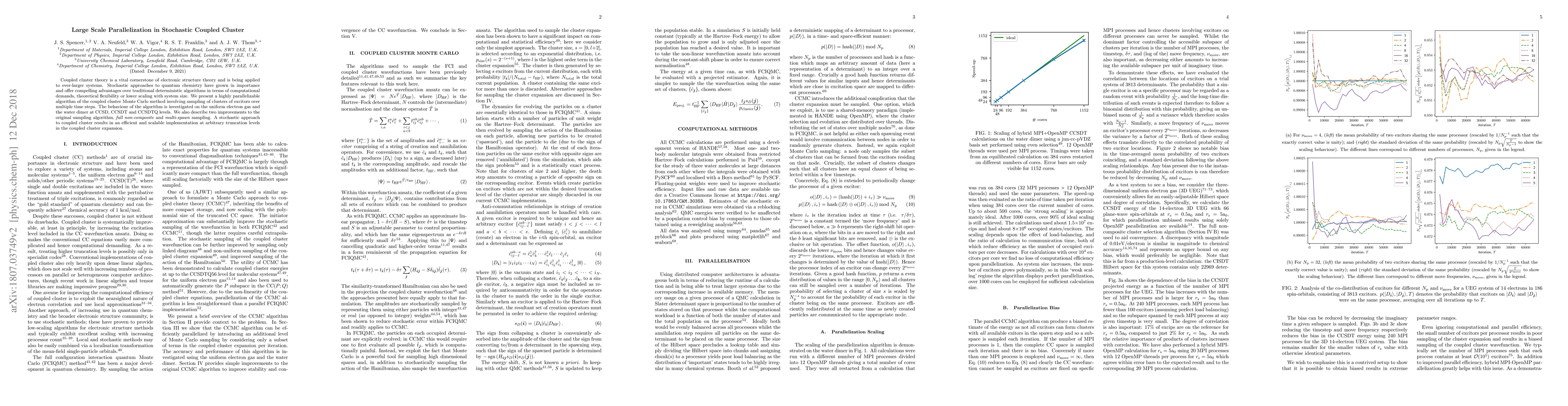 This paper introduces a highly parallelizable stochastic coupled cluster Monte Carlo method for quantum chemistry, demonstrating its efficiency and scalability through sampling of clusters over multiple time steps. The method is tested on the uniform electron gas and water dimer, showcasing improvements in non-composite and multi-spawn sampling.