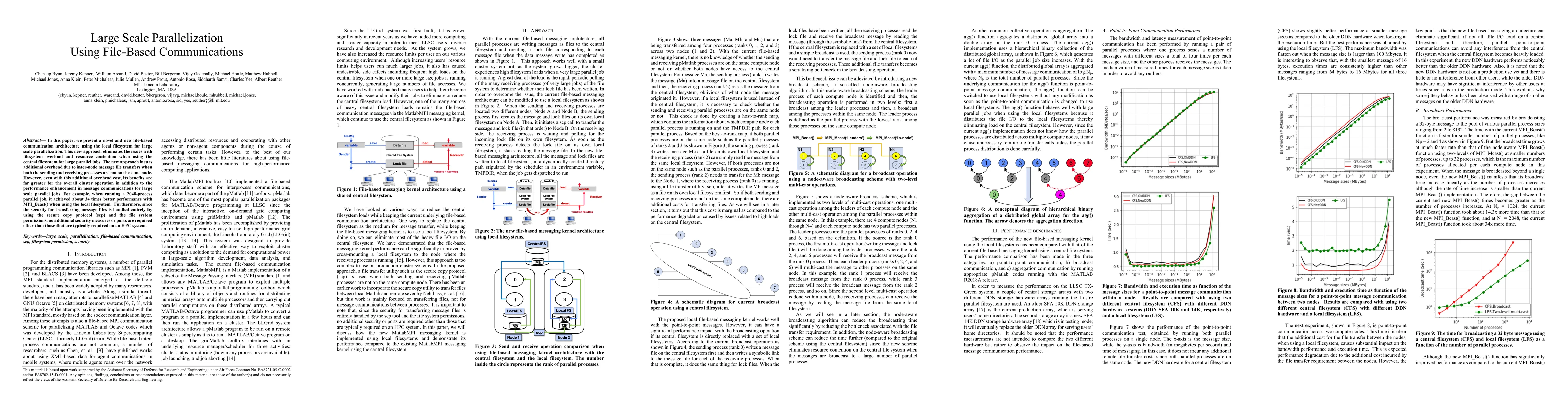 This paper introduces a file-based communication architecture leveraging local filesystems for large-scale parallelization, significantly improving performance and reducing filesystem overload, achieving 34 times better performance in MPI_Bcast() for a 2048-process job. Security is ensured through scp and file system permissions without requiring additional measures.