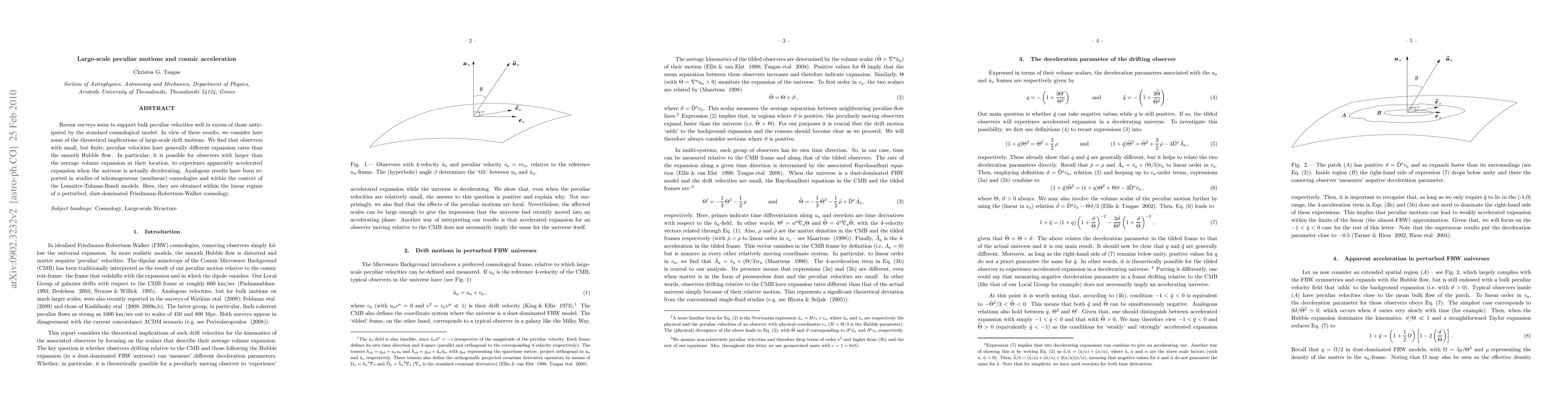 This paper explores the implications of large-scale peculiar motions in the universe, finding that observers with significant bulk velocities may experience accelerated expansion even when the universe is decelerating, challenging the standard cosmological model. Results align with findings from inhomogeneous cosmologies and nonlinear models, but are derived within the linear regime of a perturbed, dust-dominated Friedmann-Robertson-Walker cosmology.