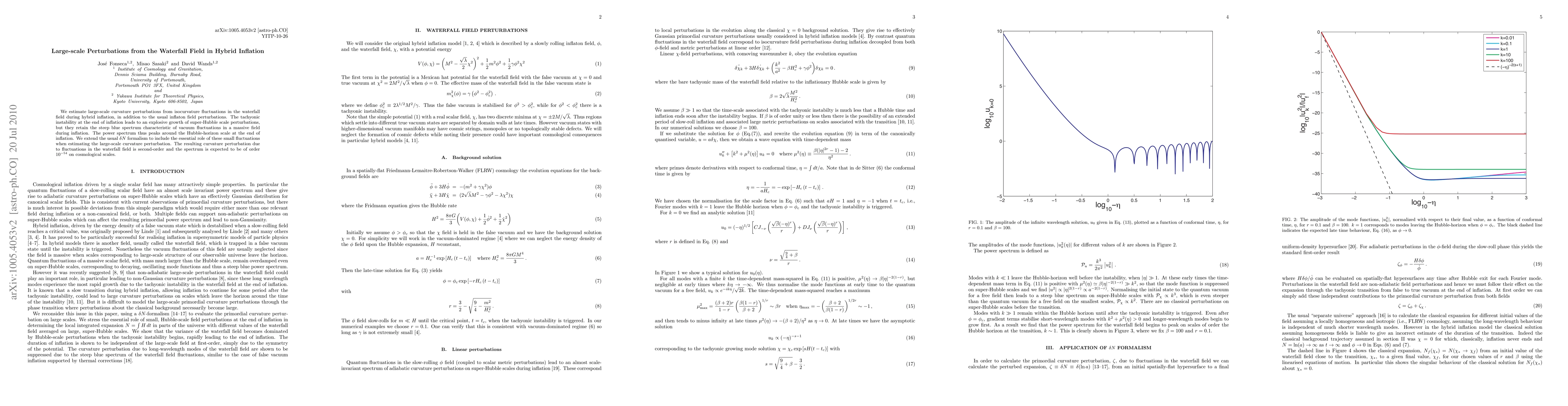 This paper investigates large-scale curvature perturbations from isocurvature fluctuations in the waterfall field during hybrid inflation, showing an explosive growth due to tachyonic instability, and extends the delta-N formalism to account for these fluctuations, predicting a second-order spectrum of order 10^{-54} on cosmological scales.