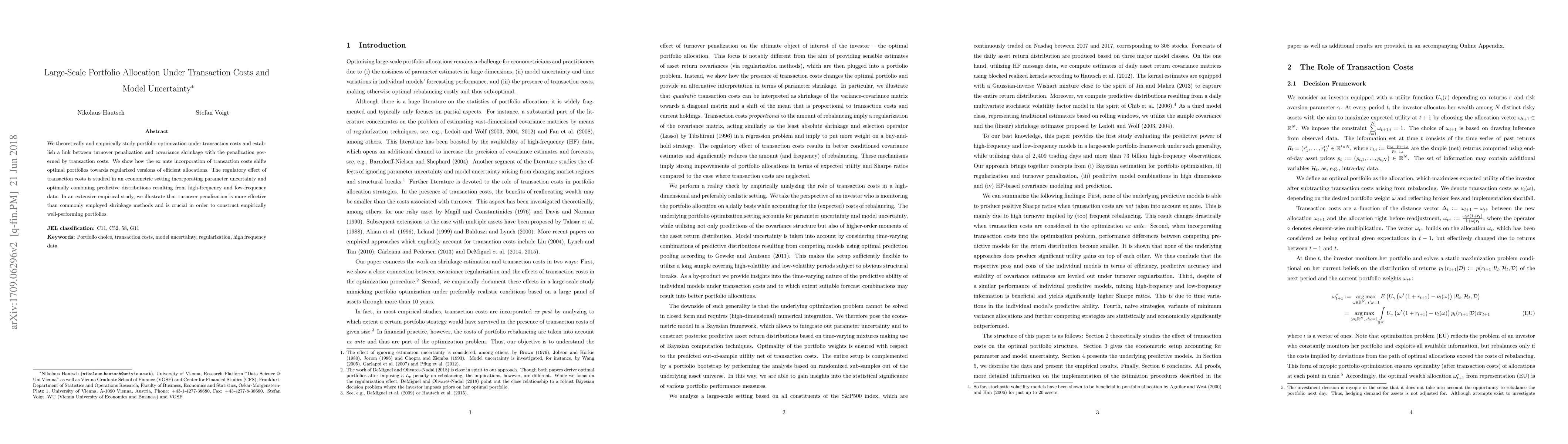 This paper investigates portfolio optimization under transaction costs and model uncertainty, demonstrating that incorporating transaction costs leads to regularized efficient allocations. Empirical results show that turnover penalization outperforms traditional shrinkage methods in constructing high-performing portfolios.