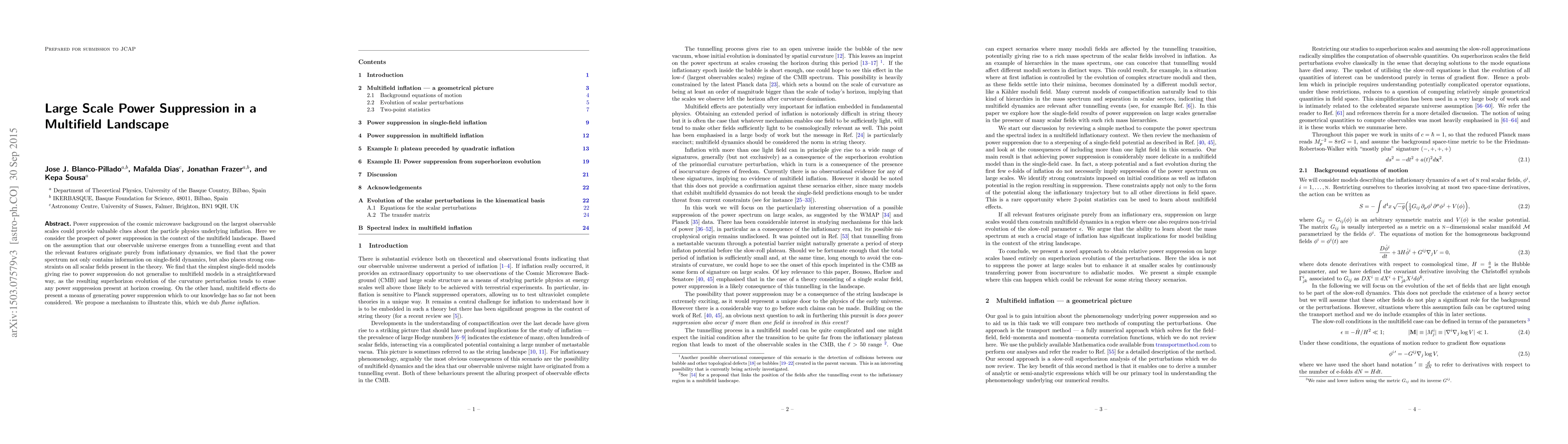 Power suppression of the cosmic microwave background on the largest observable scales could provide valuable clues about the particle physics underlying inflation. Here we consider the prospect of power suppression in the context of the multifield landscape. Based on the assumption that our observable universe emerges from a tunnelling event and that the relevant features originate purely from inflationary dynamics, we find that the power spectrum not only contains information on single-field dynamics, but also places strong con- straints on all scalar fields present in the theory. We find that the simplest single-field models giving rise to power suppression do not generalise to multifield models in a straightforward way, as the resulting superhorizon evolution of the curvature perturbation tends to erase any power suppression present at horizon crossing. On the other hand, multifield effects do present a means of generating power suppression which to our knowledge has so far not been considered. We propose a mechanism to illustrate this, which we dub flume inflation.