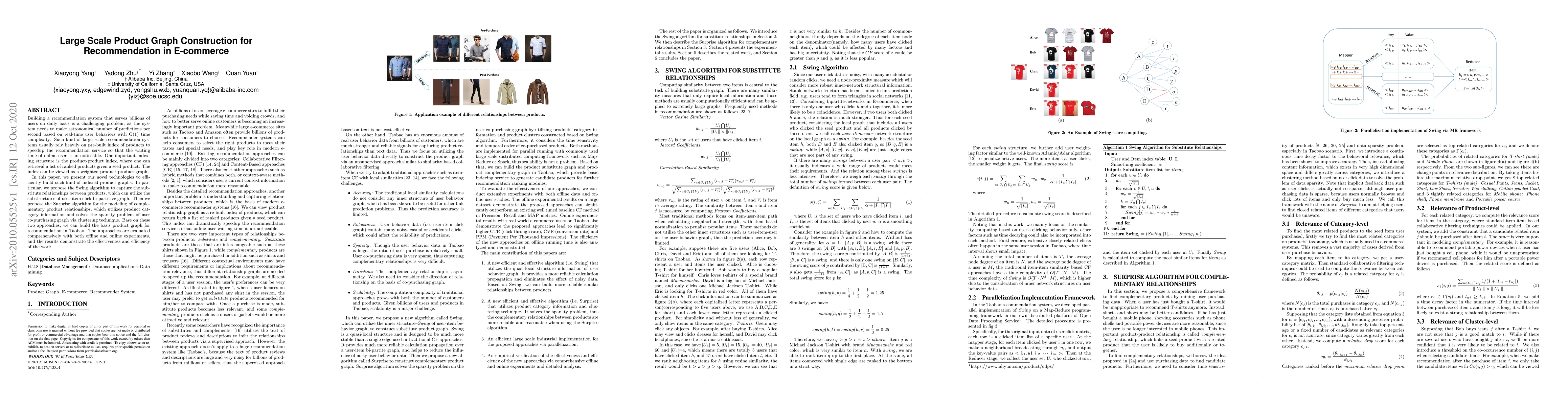 Building a recommendation system that serves billions of users on daily basis is a challenging problem, as the system needs to make astronomical number of predictions per second based on real-time user behaviors with O(1) time complexity. Such kind of large scale recommendation systems usually rely heavily on pre-built index of products to speedup the recommendation service so that online user waiting time is un-noticeable. One important indexing structure is the product-product index, where one can retrieval a list of ranked products given a seed product. The index can be viewed as a weighted product-product graph. In this paper, we present our novel technologies to efficiently build such kind of indexed product graphs. In particular, we propose the Swing algorithm to capture the substitute relationships between products, which can utilize the substructures of user-item click bi-partitive graph. Then we propose the Surprise algorithm for the modeling of complementary product relationships, which utilizes product category information and solves the sparsity problem of user co-purchasing graph via clustering technique. Base on these two approaches, we can build the basis product graph for recommendation in Taobao. The approaches are evaluated comprehensively with both offline and online experiments, and the results demonstrate the effectiveness and efficiency of the work.