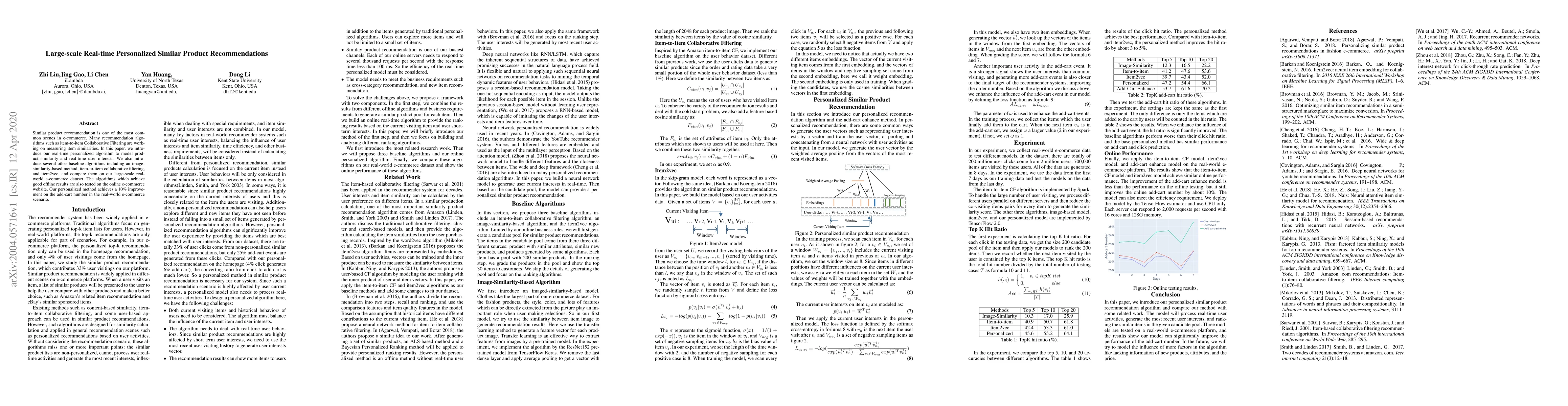 A new real-time personalized algorithm improves e-commerce recommendations with a 10% increase in add-cart numbers compared to baseline methods on a large-scale dataset.