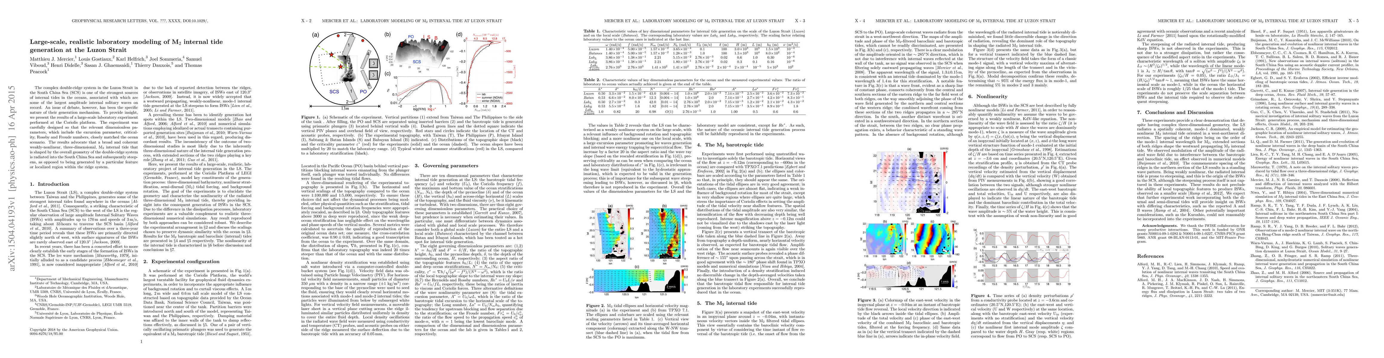 This study uses a large-scale laboratory experiment to model the generation of M2 internal tides in the Luzon Strait, finding that the tides are shaped by the overall geometry of the double-ridge system rather than localized features, and are characterized by weakly nonlinear, three-dimensional dynamics.