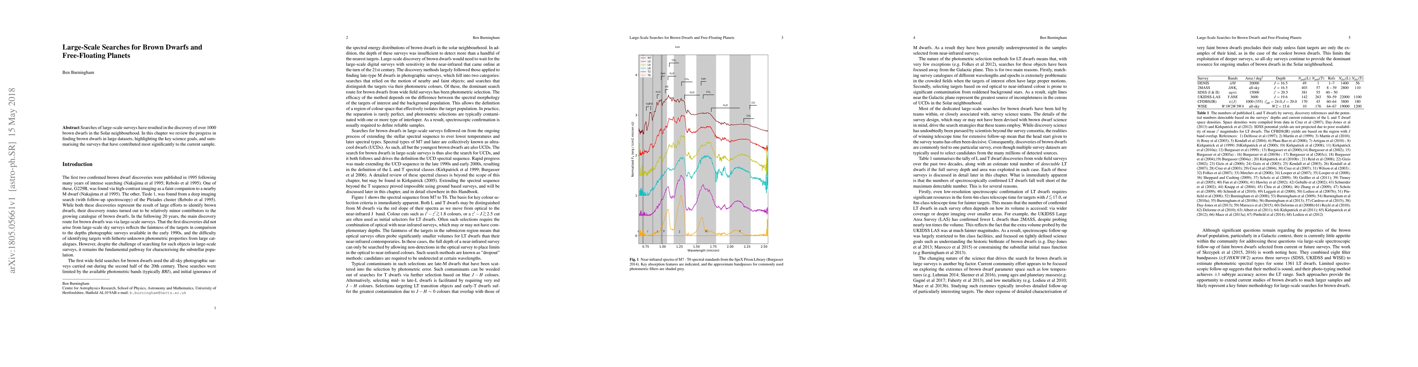 Searches of large scale surveys have resulted in the discovery of over 1000 brown dwarfs in the Solar neighbourhood. In this chapter we review the progress in finding brown dwarfs in large datasets, highlighting the key science goals, and summarising the surveys that have contributed most significantly to the current sample.
