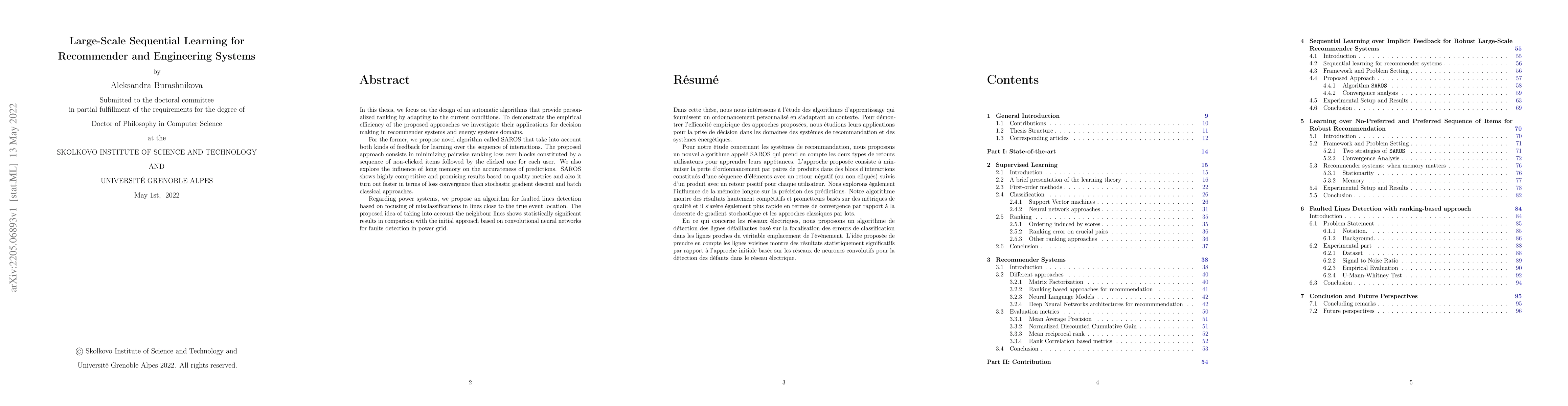 A new algorithm called SAROS is proposed for recommender systems, achieving highly competitive results and faster loss convergence than traditional approaches. Another algorithm detects faults in power grids with improved accuracy by focusing on misclassifications of nearby lines.