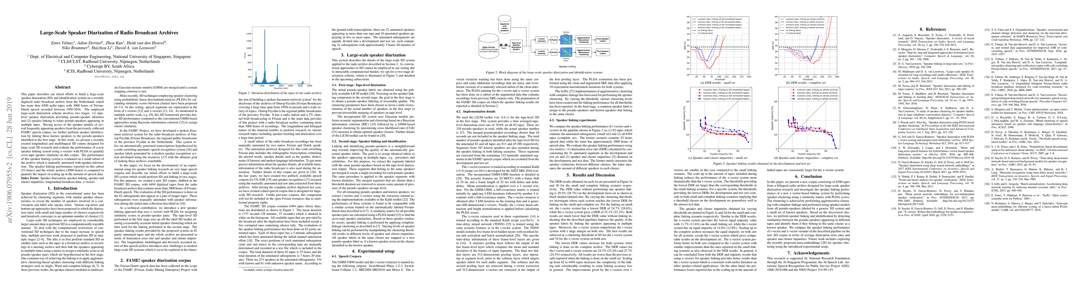 This paper develops a large-scale speaker diarization system for a 6500-tape radio archive from the Netherlands, employing a two-stage process for pseudo-speaker identification and linking. The system's performance is evaluated using a new speaker linking method based on x-vectors and PLDA, comparing results on a manually annotated subset and the entire archive.