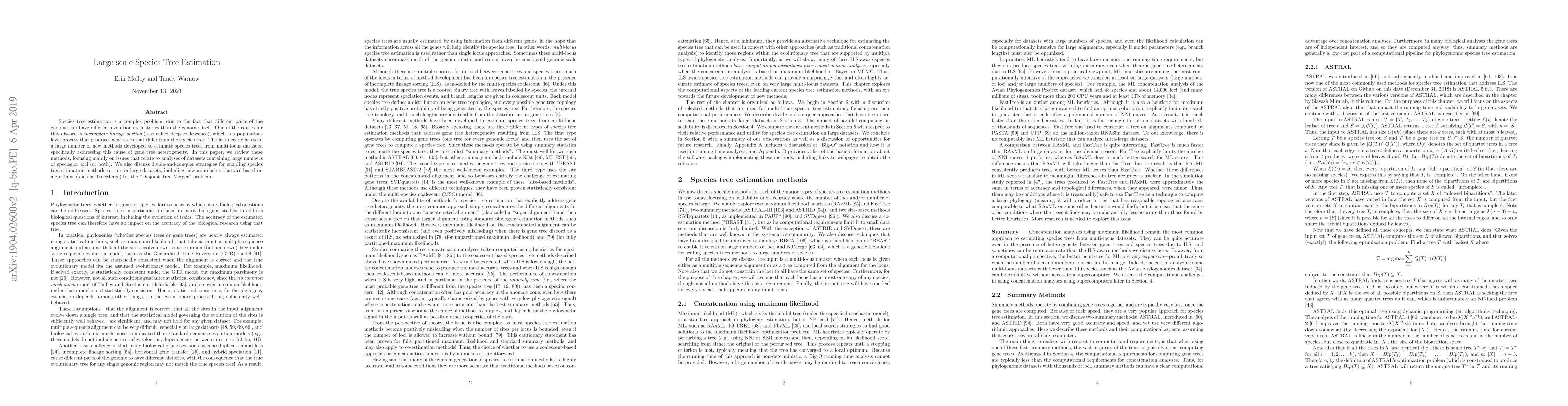 This paper reviews advanced methods for estimating species trees from multi-locus datasets, emphasizing techniques that address gene tree heterogeneity due to incomplete lineage sorting. It also explores strategies for scaling these methods to handle large datasets, including novel algorithms like TreeMerge for the Disjoint Tree Merger problem.